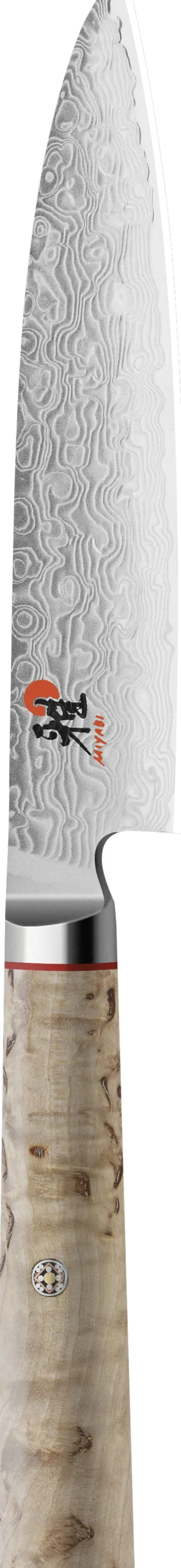 Chutoh fra MIYABI 5000MCD har en bladlængde på 160 mm og er ideel til udskæring af kød eller fisk. Knivens skaft er fremstillet i masurtræ og har den traditionelle japanske D form. Stålet har en Rockwell på ca. 63.