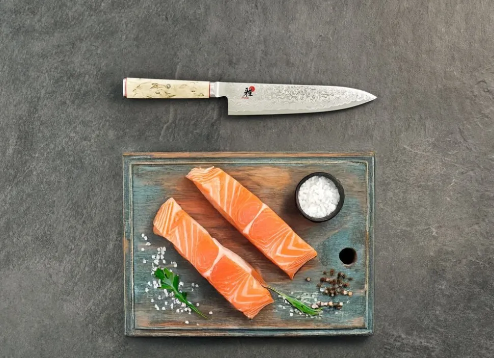 Gyutoh 24 cm kniv fra Miyabi er perfekt til at skære både kød og fisk. Dens slanke blad giver et perfekt og rent snit. Den har en autentisk japansk profil med en utrolig skarp Honbazuke finslibning og er symmetrisk poleret ved en vinkel på 19 grader. Bladet slibes først to gange på roterende slibesten og poleres derefter på et læderhjul.