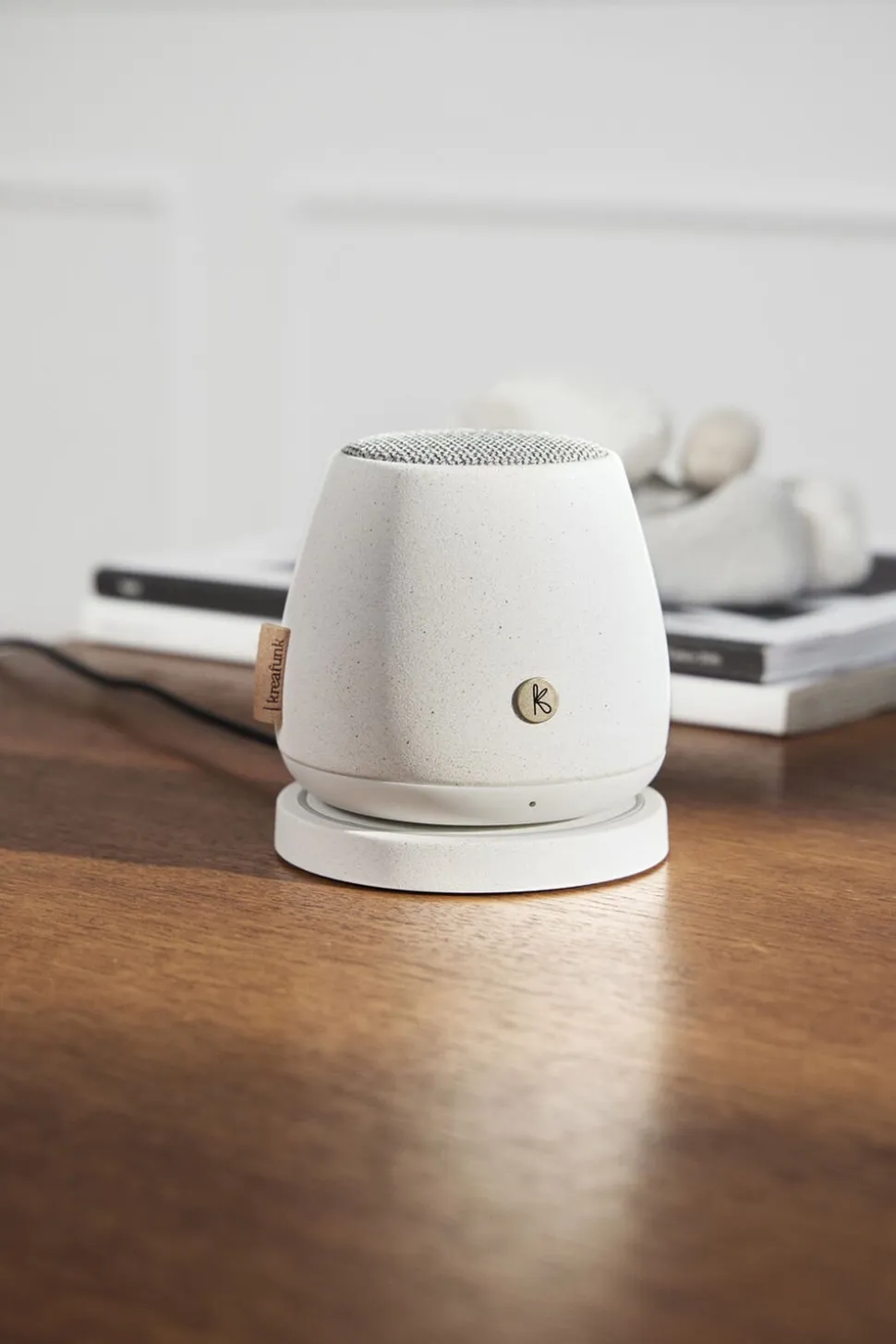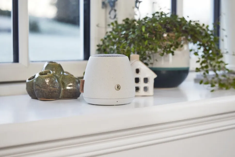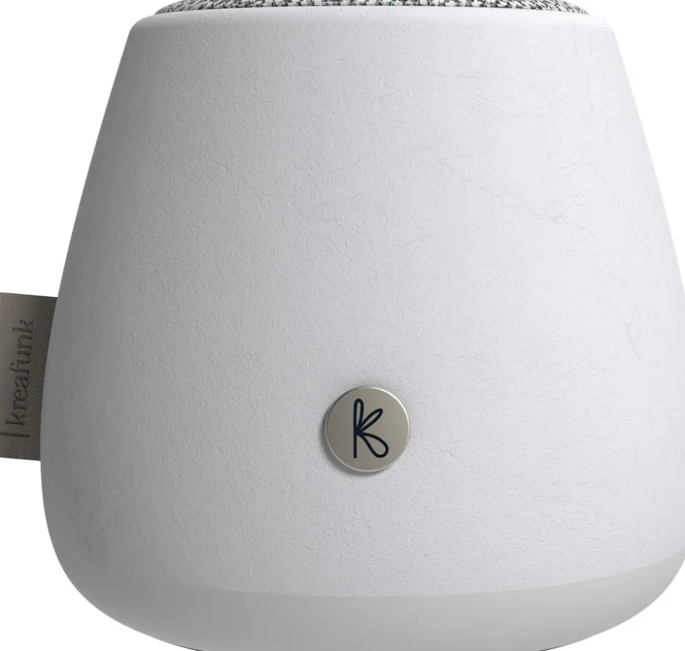 Naturlige og autentiske aJAZZ Stone er skabt som en hyldest til aJAZZ, der er et sandt Kreafunk-designikon. Højttaleren er lavet af beton og naturlige fibre, og stoffet på toppen er lavet af genbrugte plastikflasker. Den har derfor et naturligt og miljøvenligt ydre, der er venligere mod planeten.
