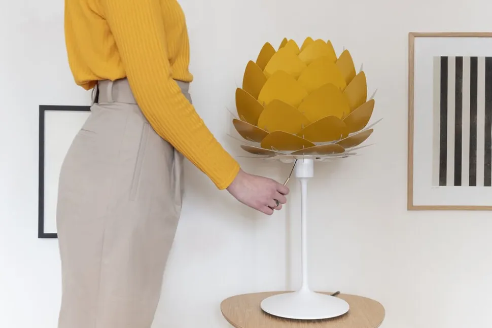 Inspireret af naturen med sine karakteristiske trekantede kronblade, kaster Aluvia i børstet messing et varmt og blændende omgivende lys, der ser lige så godt ud, som det tænder.