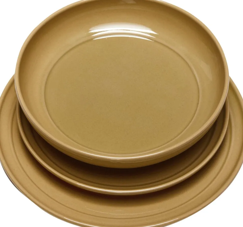 Brun keramisk morgenmadsplade med skinnende glasur.