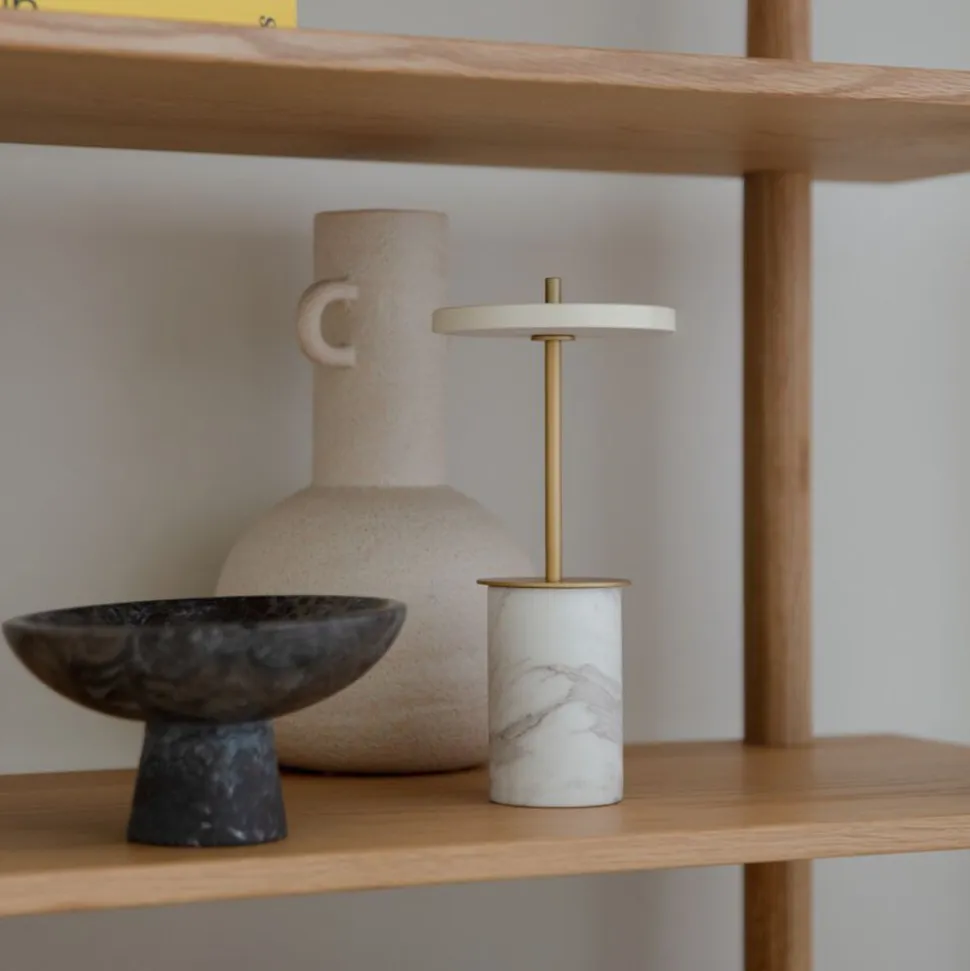 Få lys på dine middage med Asteria Move Mini – en lille bærbar lampe, der lyser op i omgivelserne og skaber den perfekte stemning til en intim middag. Asteria Move Mini har et slankt og stilfuldt udtryk med en udskiftelig Fast af massiv marmor, der giver et klassisk touch til Design. Asteria Move Mini har fire forskellige lystrin, der giver dig mulighed for at justere lyset til den ønskede indstilling med et let tryk på lampens base. Dens stendetaljer tilføjer et skulpturelt præg til Design, hvilket får Asteria Move Mini til at pryde enhver hylde eller skabstop i hjemmet. Opladning af Asteria Move Mini sker uden besvær ved at placere lampen på den medfølgende opladningsplade. Asteria Move Mini er velegnet til både indendørs og Outdoor brug.