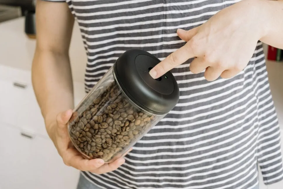Hold kaffen friskere i længere tid. Denne lufttætte beholder har en enkel drejemekanisme til at fjerne luft og forhindre oxidering, der forlænger kaffens levetid to gange.