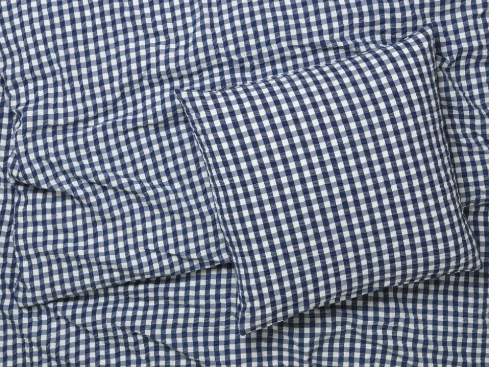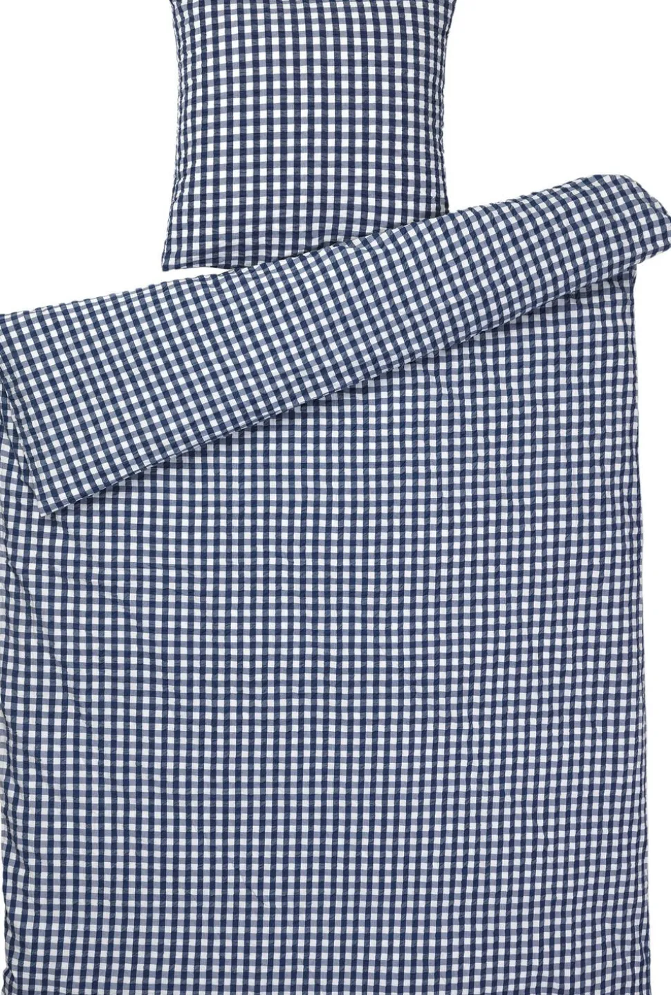 Det fine Bæk & Bølge sengetøj i mørkeblå og hvid fra Juna måler 140 x 220 cm. Det klassiske ”Bæk og Bølge”-materiale er kendetegnet ved dets slidstyrke og lette kvalitet, der gør det særdeles anvendeligt til sengetøj. Sengesættet er produceret i 100% økologisk vævet bomuld, hvilket både føles dejligt mod huden og pynter pænt på sengen. Dynebetrækket har knaplukning og pudebetrækket kuvertlukning, hvilket både gør det nemt at skifte efter behov, hvor det samtidig giver en flot finish, når sengen er redt. Det anbefales, du vasker Bæk & Bølge sengesættet ved 40 grader i vaskemaskinen for at bevare blødheden og kvaliteten længst muligt.
