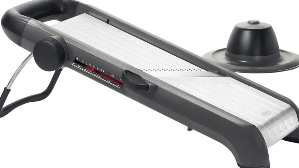 • Praktisk og holdbar: Mandolinjernet har et godt greb i non-slip gummi og skridsikre ben, der kan foldes sammen for kompakt opbevaring. Den er lavet af robuste materialer og tåler maskinopvask.