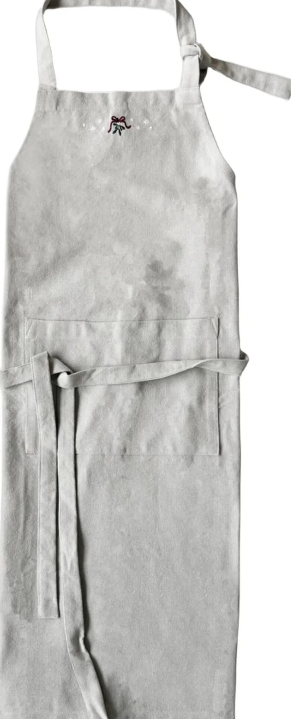 Mærk stemningen med JUNA Christmas Fable magiske juletekstiler til alle rum. Juleeventyr, fantasi og humoristiske dekorationer med masser af cosy kant. Med JUNA Christmas Fable får du en serie af moderne tekstiler med broderede motiver, der både æstetisk og legende forankrer og fornyer julens helt særlige stemning gennem et magisk juleunivers fuld af traditioner, hygge og personlighed. Tænk på en komplet og fuldstændig gennemført julekollektion af certificerede tekstiler til både dit køkken og resten af hjemmet. De dekorative julesokker på trappen fyldt op med dagens kalendergaver. Duftene fra køkkenet, der blander sig med hjertevarme forventninger og kærlige minder om en hyggelig aften i stuen. Den ikoniske juleborddækning, der løfter stemningen og får både børn og voksne til at glædes sammen. Og forestil dig så det hele tilsat nærmest karikerede klassiske broderier, der fortæller endnu flere historier end de tråde, de er syet med. Tryllebunden misteltensmagi, skitseagtige juletræer, nuttede rensdyr, ikoniske julehjerter og fluffy julestjerner. Alle skabt med masser af glimt i øjet i en sød og bevidst naivistisk stil, der ikke kan undgå at sende dit julehumør helt op til den skønneste stjernehimmel. JUNA Christmas Fable er skabt til at samle os omkring bordet, i køkkenet og også trække julestemningen med helt ind på puden, inden vi rammer drømmeland. Fuld af små broderede detaljer. Spækket med de helt store julefølelser. Dette fortryllende JUNA Christmas Fable-forklæde i en klassisk sandfarve er dekoreret med et broderet motiv af seriens mistelten, der omgivet af de yndigste små julestjerner i hvid smukt og stilfuldt pryder toppen af forklædet. Forklædet har selvfølgelig stropper for den helt rigtige justering både over nakken og omkring kroppen, og lige midt på fronten finder du en praktisk lomme perfekt til at hænge et af Christmas Fable-seriens matchende viskestykker i. Forklædet er onesize og kommer i et skønt tekstilmix, hvor GRS-certificeret genanvendt bomuld bliver spundet sammen med polyester for en flot og funktionel stofkvalitet med både blødhed og slidstyrke. JUNA Christmas Fable-serien giver dig et bredt udvalg af certificerede juletekstiler til hele hjemmet, hvor du mærker julestemningen i hver eneste tråd, og som du kan glæde dig til at finde frem jul efter jul. En kærlighedserklæring til godt håndværk og dekorativt dansk design vævet sammen af store eventyr og små broderede detaljer skabt til at holde længe og blive elsket endnu længere. (GRS Certified by Control Union, 1026087)