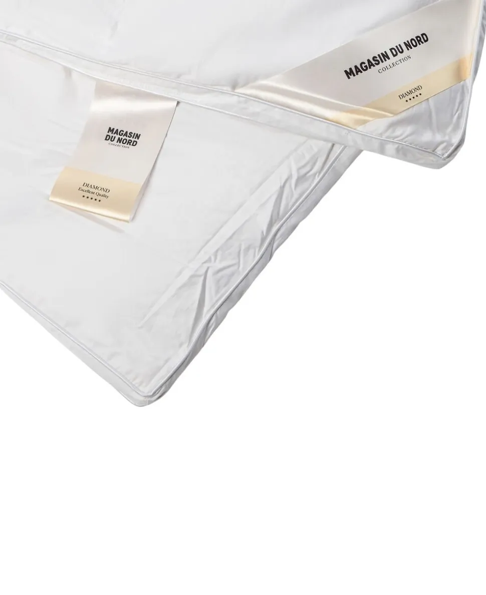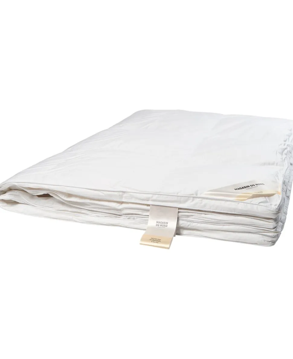 Diamant Gåsedunsdyne – Let 140×220 cm: indeholder 420 g hvide Gåsedun med Bæreevne/isoleringsevne 800. Lækker dyne med de blødeste dun, våret er 100% Bomuld satin, hvilket giver et lækkert blødt og åndbart produkt. Hold hovedet koldt og kroppen varm med en Magasin Guld Gåsedunsdyne Let Helårsdyne, som holder dig varm hele natten året rundt. Den lune Gåsedun helårsdyne er anbefalet til dig, der har en kold kropstemperatur eller kold rumtemperatur. Gåsedunsdynen er syet i kassetter, hvilket sikrer dig en jævn fordeling af fyldet og en fyldig dyne hver eneste dag. Dynen er deklareret af Astma-Allergi Nordic samt NOMITE-, Oeko-Tex- og Downpass-certificeret. En dyne til dig, hvor kun det bedste er godt nok.