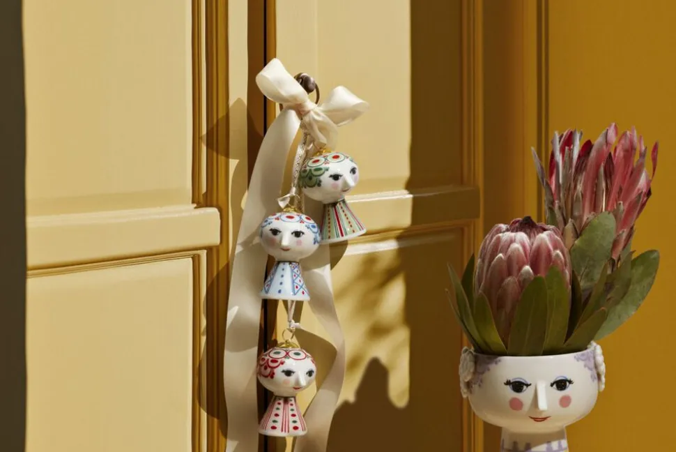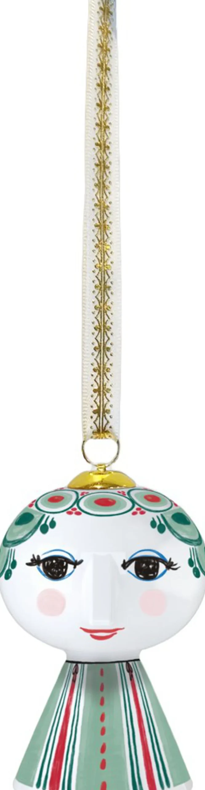 Udfold din farverige personlighed og skab plads til glæde med Bjørn Wiinblads Eva. Så snart du inviterer Eva indenfor, vil du med den populære serie med Bjørn Wiinblads gennemgående streg øjeblikkeligt skabe plads til glæde overalt i hjemmet. Gennem hele sit virke udforskede Bjørn Wiinblad farver, former og mønstre, og med den ikoniske Eva-figur som ophæng kan nemt og dekorativt du lade kreativiteten få frit spil overalt i boligen. Bjørn Wiinblad repræsenterer alt, hvad der er skørt, skævt, kreativt og vidunderligt. Og med dette smukke Eva-ophæng i overvejende grønne nuancer inspireret af kunst fra Bjørn Wiinblads legendariske designarkiv får du hurtigt, enkelt og dekorativt skabt et en stemning af glæde og kreativitet, der strømmer ud i ethvert hjørne i dit hjem. Ophænget måler 7,5 cm i højden og er lavet af blankglaseret porcelæn med farvet decal og er inspireret af Bjørn Wiinblads originale Eva-univers, hvor brede hoveder med blomsterdekorationer og en kegleformet krop dannede grundstenene. Ansigtet med de mandelformede øjne og den spidse næse er Wiinblads oprindelige streg, og det farverige kjolemønster er en nyfortolkning af Bjørn Wiinblads illustrationer fra arkiverne. Med sit glade smil, de blussende kinder og farverige dekorationer rummer Eva på alle måder essensen af Bjørn Wiinblad som person og kunstner. Der er noget larger than life over hendes selvsikre, poetiske og drømmende fremtoning, der uanset størrelse gør hende til et statement piece, der fanger øjet i indretningen. Hun pynter og skaber glæde på juletræet, i vinduet og på grene, hvor hun hængende i bånd med guldprint med original Bjørn Wiinblad-dekoration lyser op og gør livet mere farverigt præcis som Bjørn Wiinblad elskede det. Bjørn Wiinblad var en livsglad kunstner med en stor og farverig personlighed, der gik sine egne veje og ikke var bange for at drømme og tænke stort. Den sjæl mærkes også i Eva, der hviler i sig selv og inviterer os til at udtrykke vores egen stil og personlighed med fokus på kreative dekorationer. En ting er sikkert: Det bliver ikke kedeligt, når Eva flytter ind.