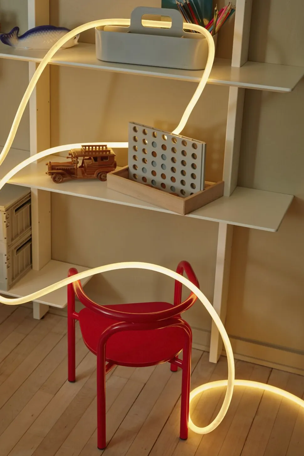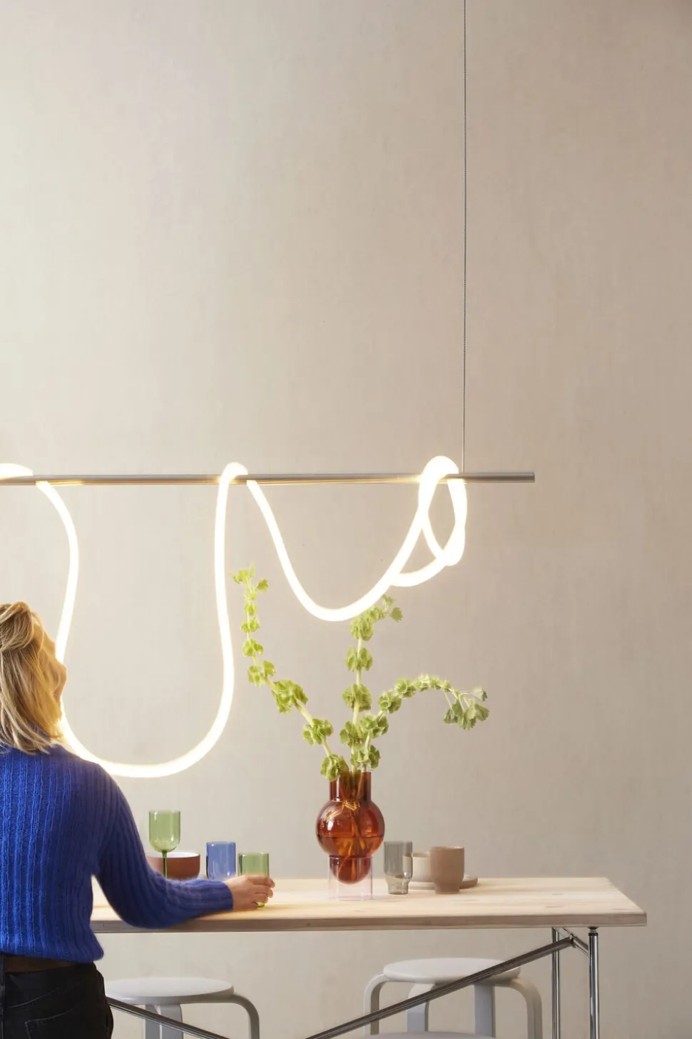 Lampen er en nytænkende designerlampe der både er funktionel og fleksibel, da den kan benyttes på utallige måder og med sine 9 meter behøver du ikke at begrænse dig. Brug den eksempelvis som loftlampe, væglampe eller bordlampe. Brug de medfølgende ophæng til at skabe et unikt mønster på væggen og lad lampen smyge sig i organiske og naturlige former. Den kan også draperes over et rør, som du hænger vandret ned fra loftet over et langt spisebord, eller du kan vikle den rundt om sig selv og lægge den på gulvet for at skabe et alternativ til den traditionelle gulvlampe.
