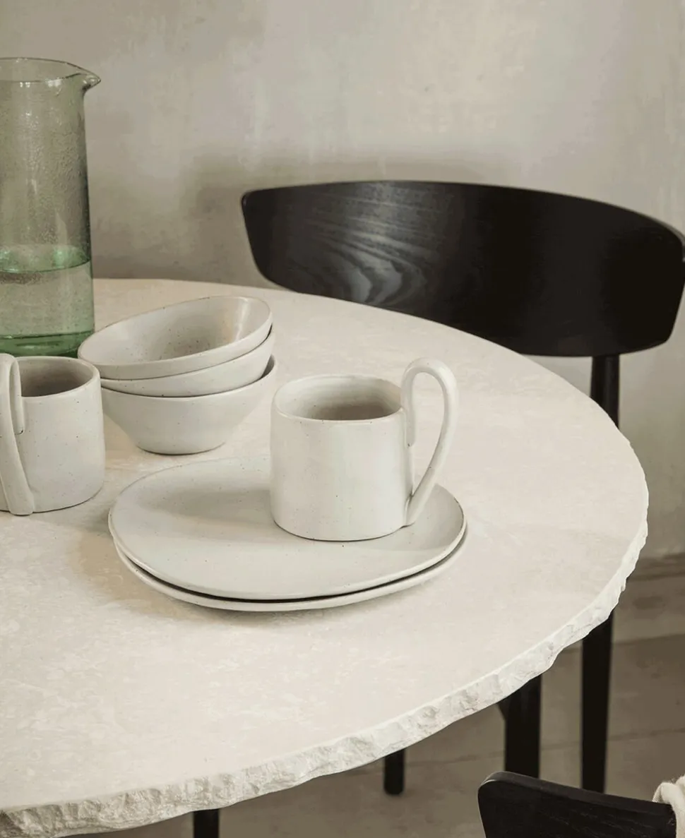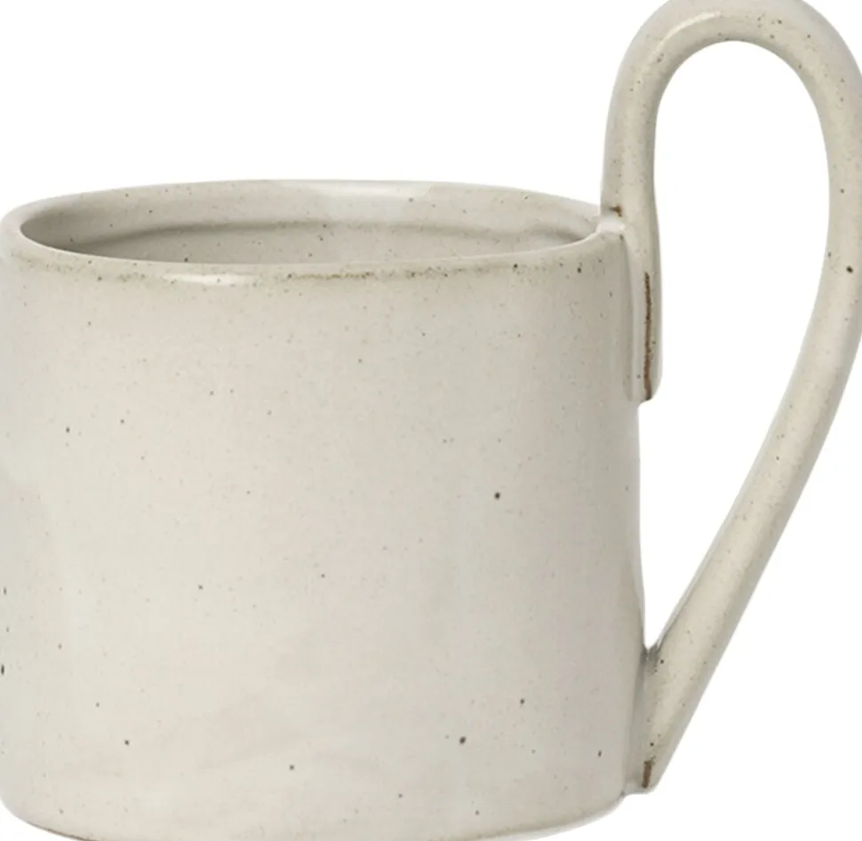 Flow er en serie af perfekt ufuldkommen bordservice skabt til en moderne følsomhed ved hjælp af traditionelle håndværksteknikker. Alle delene er glaseret, så der opnås et unikt udtryk. Denne dejligt rummelige kop har en karakterfuld aflang hank, der passer perfekt til dagens første kop kaffe.