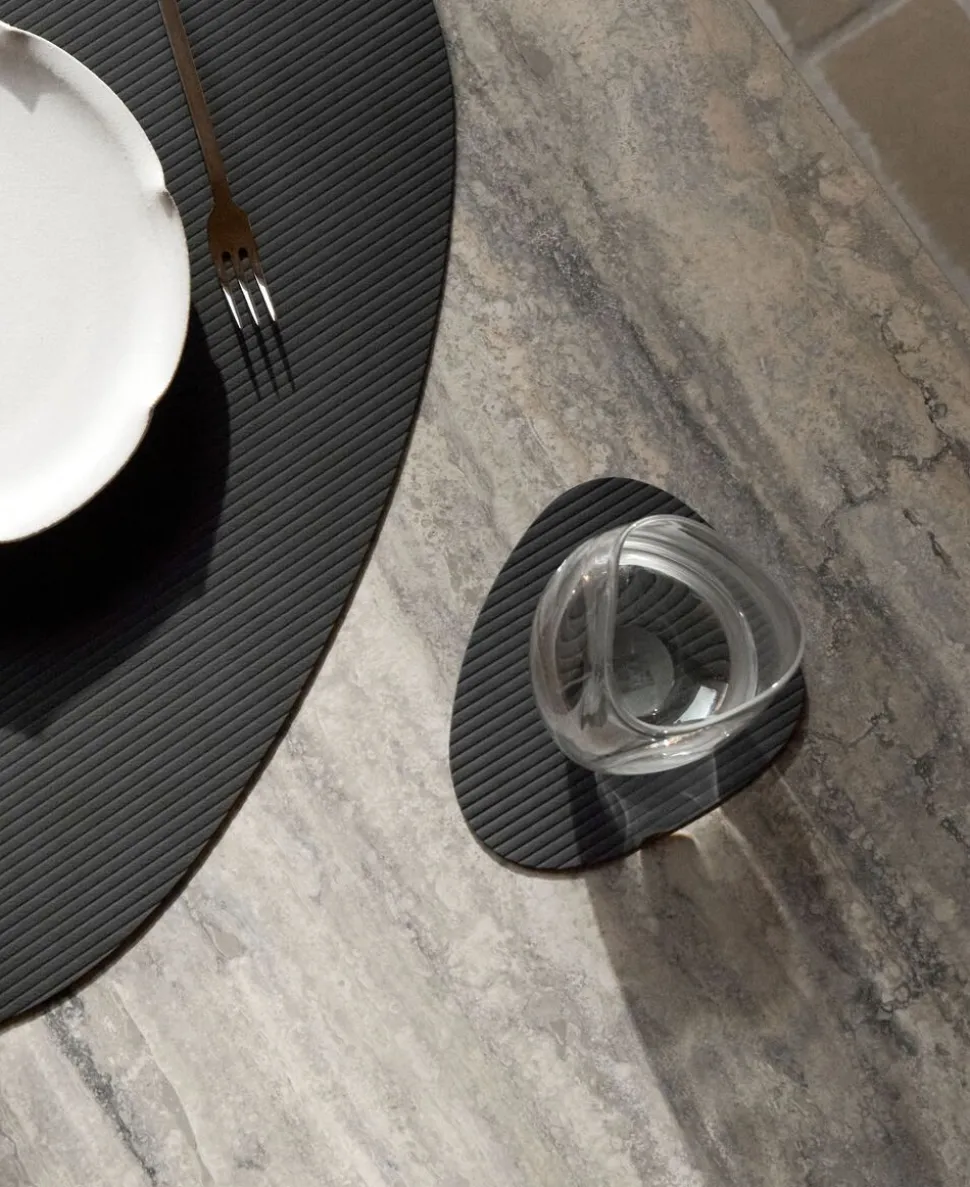 Den velkendte curve-form er blevet et moderne designikon, der bringer et blødt og organisk udtryk til borddækningen. Glasbrikkerne kombinerer funktionalitet og æstetik, så du både beskytter bordet mod mærker og samtidig tilfører en dekorativ detalje. I den eksklusive corduroy-struktur fremstår glasbrikken med en diskret riflet overflade, som man kender fra fløjsmaterialet, hvilket giver et raffineret og underspillet look til både hverdags- og festlige borde.