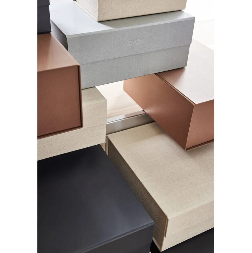 Vores japansk-inspirerede Hako opbevaringsæsker forener funktionalitet og æstetisk på harmonisk vis. Inspireret af den minimalistiske og elegante designfilosofi i den japanske kultur, tilbyder disse opbevaringsæsker en stilfuld løsning til at organisere dit rum samtidig med at de tilføjer et strejf af ro. Udført med omhu for detaljerne, har vores Hako opbevaringsæsker rene linjer, naturlige materialer og subtile, men sofistikerede accenter. Hver æske er omhyggeligt designet for at udtrykke essensen af japansk æstetik og bringe en følelse af ro og orden til dit hjem eller kontor. Hako opbevaringsæskerne leveres flat-packed. De fås i forskellige størrelser og farver.