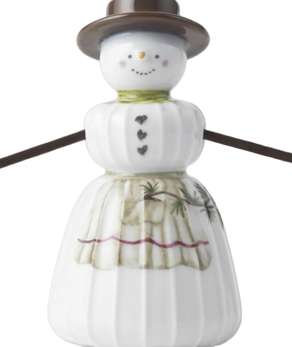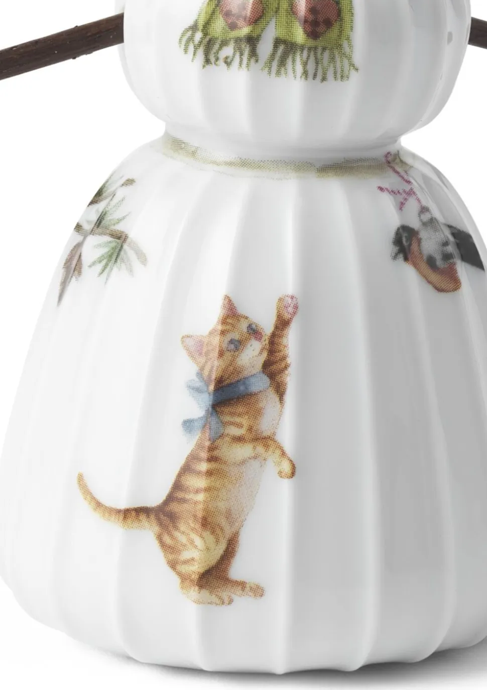 Juletraditioner og håndværkstraditioner i skøn forening. Med familien af snemænd fra Kählers juleserie Hammershøi Christmas bringer du enkelt og autentisk julestemningen ind i boligen med glade smil og hyggelige julemotiver, der matcher seriens øvrige dele og fuldender julehyggen, samtidig med at du kan nyde nostalgien i Kählers håndlavede designtraditioner. Gå en tur i haven, parken eller skoven og find jeres egne små kviste, der kan bruges som arme til seriens søde figurer. Måske som en ny, hyggelig juletradition den 1. december. På den måde bliver snemændene endnu mere personlige og betydningsfulde. Vær opmærksom på at de medfølgende arme til både den stående og hængende familie af snemænd udelukkende er vedlagt som inspiration til, hvordan du kan personliggøre dine Kähler-snemænd i din helt egen DIY-stil. Snekonen har selvfølgelig en høj hat på, som vi forbinder det med en klassisk snemand. Hun måler 11 cm i højden og 6 cm i diameter og er udformet i bløde linjer med Hammershøi-seriens ikoniske riller, der kendetegner Hans-Christian Bauers stel og bordpynt. Denne model er den stående udgave af Snekonen, men du kan også få hende som ophæng. Så der er frit valg. Skab dit eget snelandskab i vinduet, på hylden eller på julebordet, eller lad hele familien pynte på juletræet eller på smukke grene i en flot vase. Kählers snemandsfamilie består af Snemanden, Snekonen, Snedrengen og Snepigen, der alle på forskellig vis er dekoreret med motiver fra Hammershøi Christmas-serien malet i akvarel af Rikke Jacobsen og overført til det snehvide porcelæn. Motiverne er klassiske julemotiver som julehjerter, kræmmerhuse og gaver i en autentisk, hyggelig og håndmalet stil, som man slet ikke kan undgå at komme i den helt rigtige julestemning af.