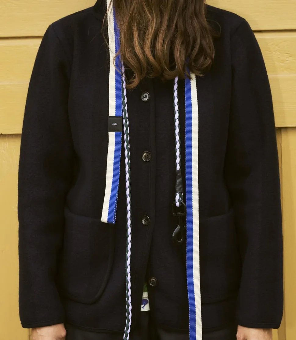 HAY Dogs Leash-Flat M/L-Blue, råhvid
