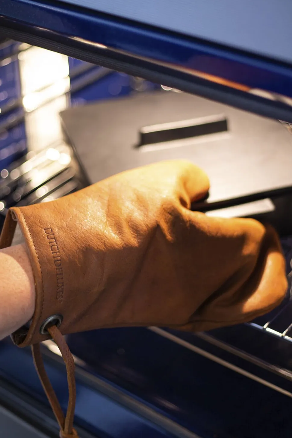 Håndlavet i Holland af 100 % kernelæder. Kernelæder er en læderkvalitet til løstsiddende brug. Regelmæssig brug og tidens gang vil skabe en patina og en blød glans, der udvikler sig på læderets overflade, da det er et naturprodukt, der ældes naturligt. Hvilken gør handsken mere smuk at bruge på grund af det brugte look. Brug ovnhandsken op til 240 grader på grund af dens varmebestandige foring. Handsken er behandlet med en gennemsigtig smudsafvisende belægning, der gør den nemt at rengøre med et vådt håndklæde. De leveres i en smuk gaveæske og er den perfekte gave til alle med en passion for køkken og design. Den klassiske ovnhandske fås også i Black, New Natural og Taupe. Tip: Tjek de forklæder, der fås i kernelæder!