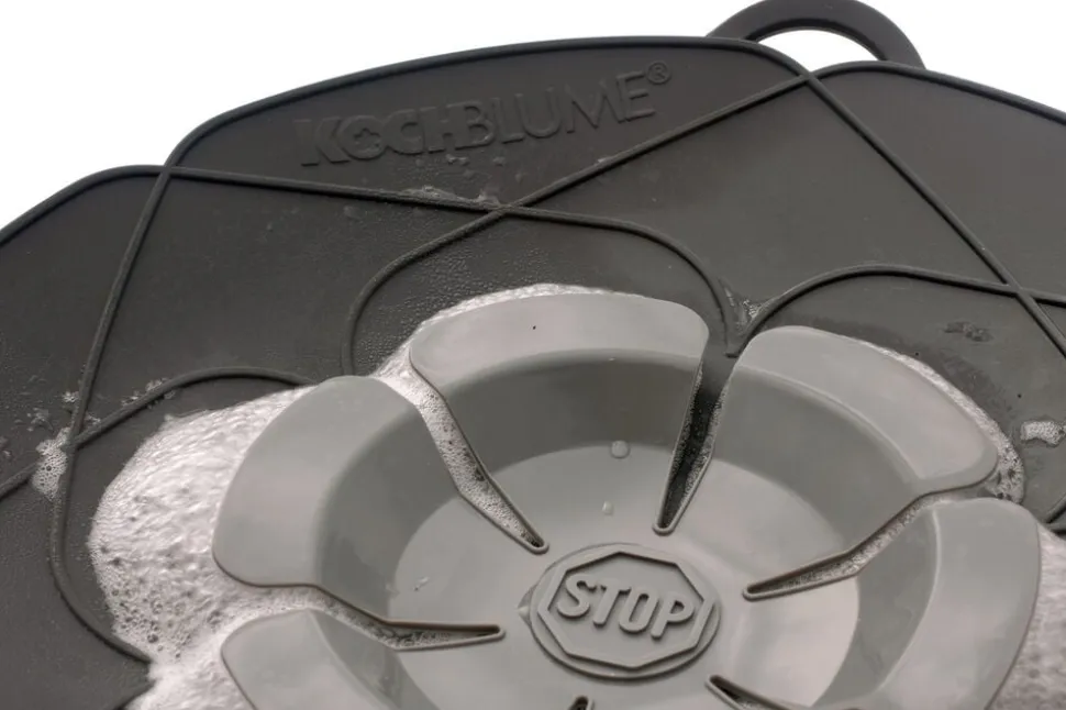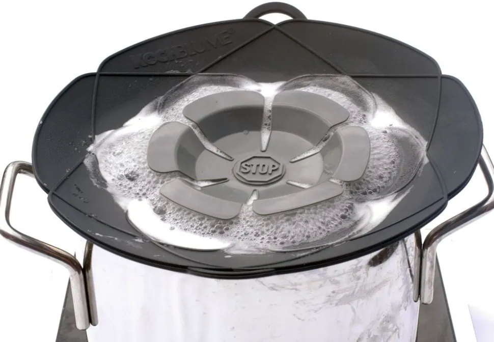 Smart låg i silikone, lille størrelse. Forhindrer kogning over og kan bruges som stænklåg. Antracitgrå farve passer til moderne køkkener.