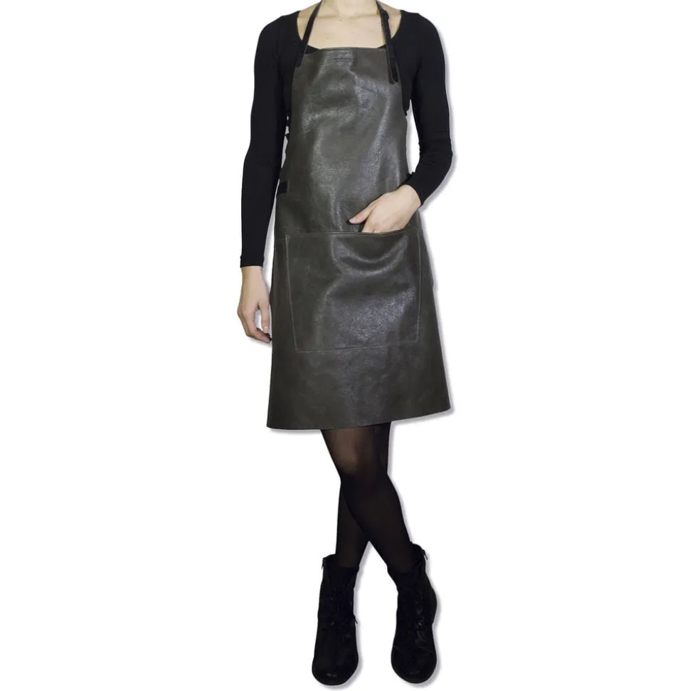 Det karakteristiske vintageforklæde i BBQ-stil er unikt, da det er fremstillet af 100 % ægte kernelæder og samtidigt bevarer sit skarpe image. Til alle med en passion for grill, køkken og detaljer. Behandlet med en gennemsigtig smudsafvisende belægning, der gør det nemt at rengøre med et vådt håndklæde. Luk forklædet på ryggen med en bæltespændelukning. Forklædet i BBQ-stil leveres med to karabinkroge og har en løkke i taljeremmen til dit håndklæde og andet køkkenudstyr. Håndlavet i Holland af kernelæder. Regelmæssig brug og tidens gang vil skabe en patina og en blød glans, der udvikler sig på læderets overflade, da det er et naturprodukt, der ældes naturligt. Hvilket gør forklædet smukkere ved brug! De leveres i en smuk gaveæske og er den perfekte gave til alle med en passion for køkken og design. Vintage læder BBQ-stilen fås også i vintage brown og vintage camel. Tip: Få matchende ovnhandsker i samme kvalitet og farve som forklædet!
