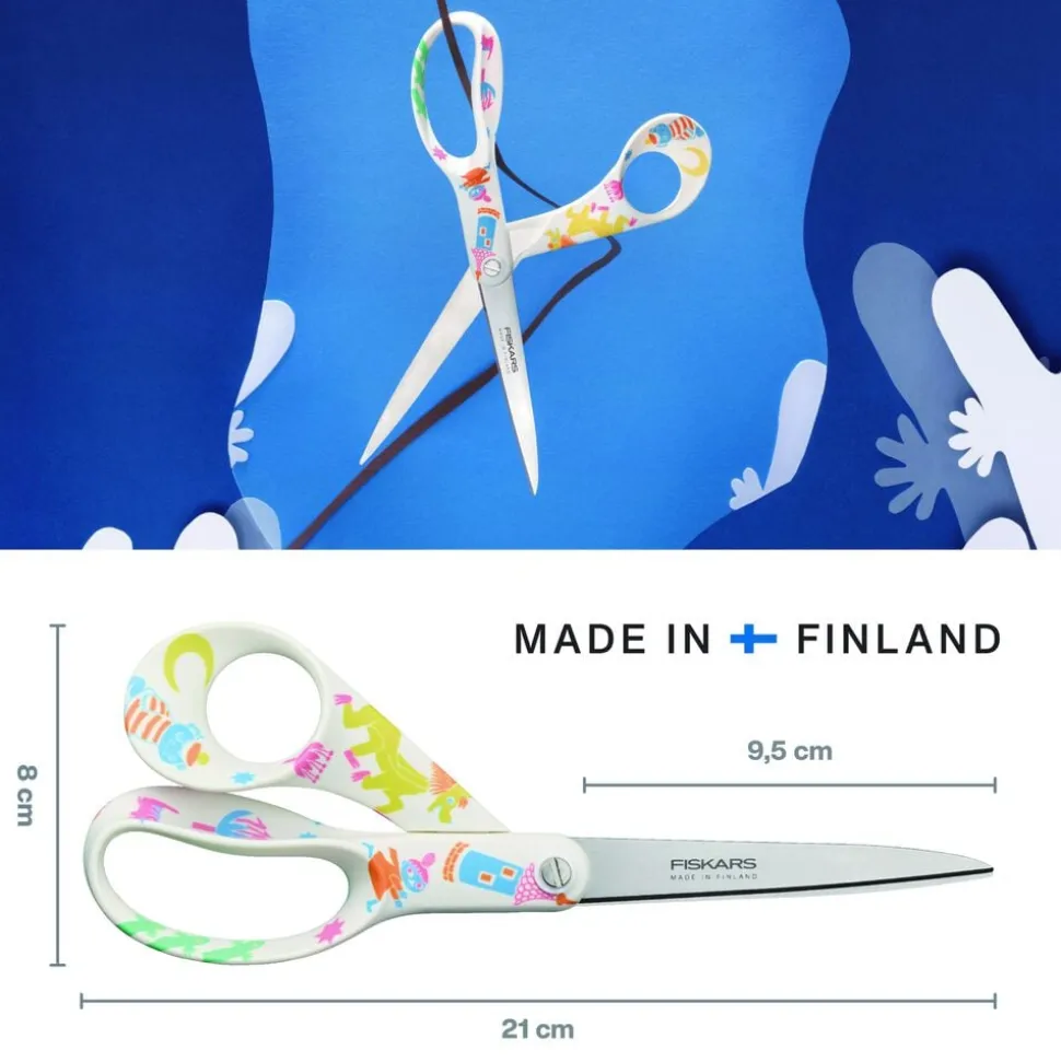 Vær med til at fejre 80-års jubilæet for de sjove og skæve mumikarakterer med en Moomin Fiskars-universalsaks 21 cm Fest. Fremstillet i Finland, håndtestet.