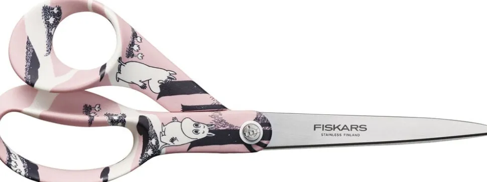 Jeg vil holde dig og klappe dig og elske dig. Du kan sove på min pude.”” MUMITROLDEN. De dejlige og skæve karakterer i Mumi-historierne bliver levende i en legende Kollektion af Fiskars sakse. Omfavn Mumitroldens nysgerrighed i hvert snit, og opfind nye ideer med hvert projekt. Fiskars X Mumi Universalsaks KÆRLIGHED, er ideel til alsidige klippeopgaver i hjemmet, skolen og på kontoret. Fiskars sakse er lavet med knive i rustfrit stål af høj kvalitet med en præcisionsslebet kant, der forbliver skarp længere og skærer helt ud til spidsen. Et let, ergonomisk formet håndtag sikrer komfort og kontrol. Fremstillet i Finland, testet i hånden.