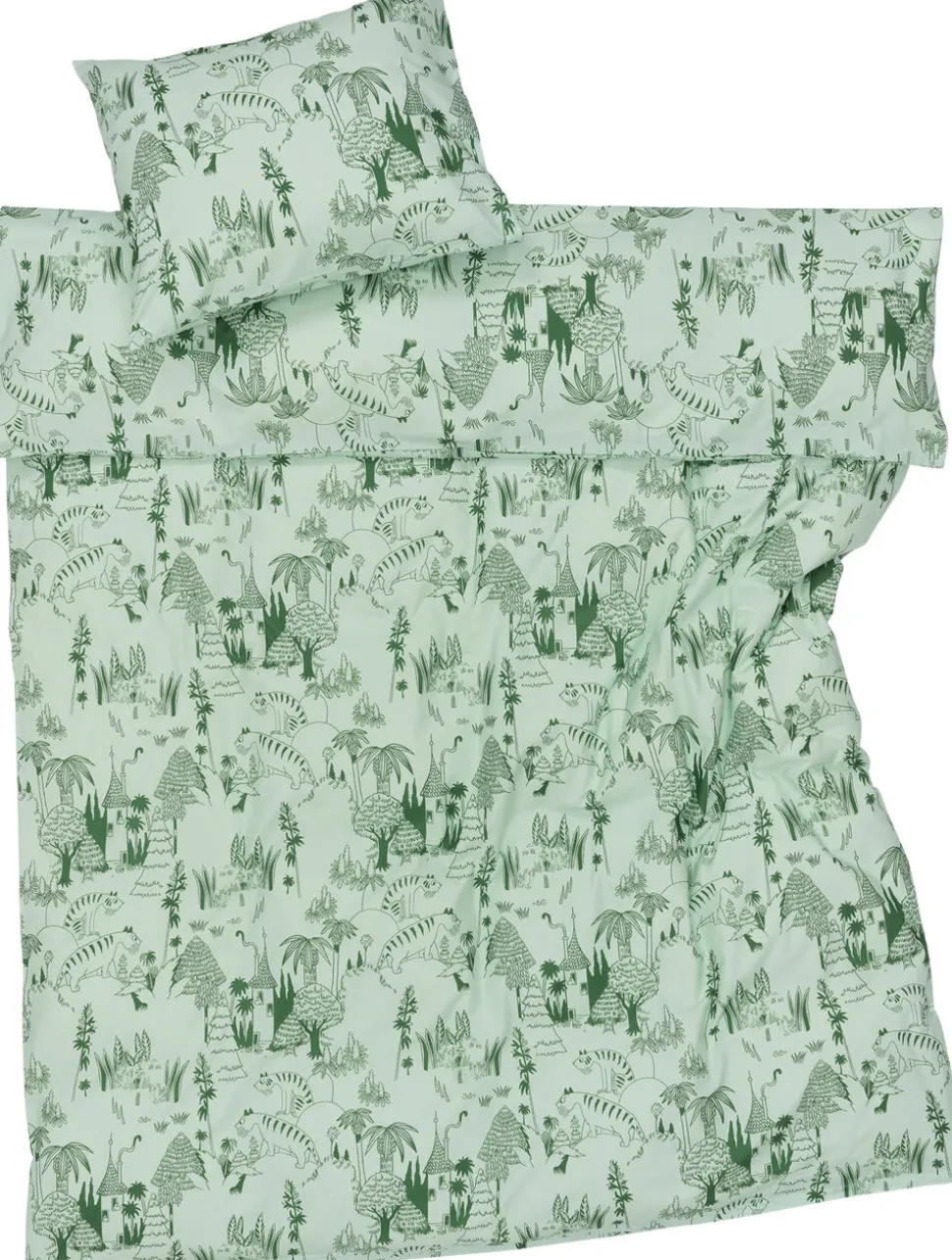 Tør du sove omgivet af tigere? Mumimor planter tropiske frø, der forvandler dalen til en jungle. Mumi sengesæt 140×200 Havefest, økologisk bomuld.