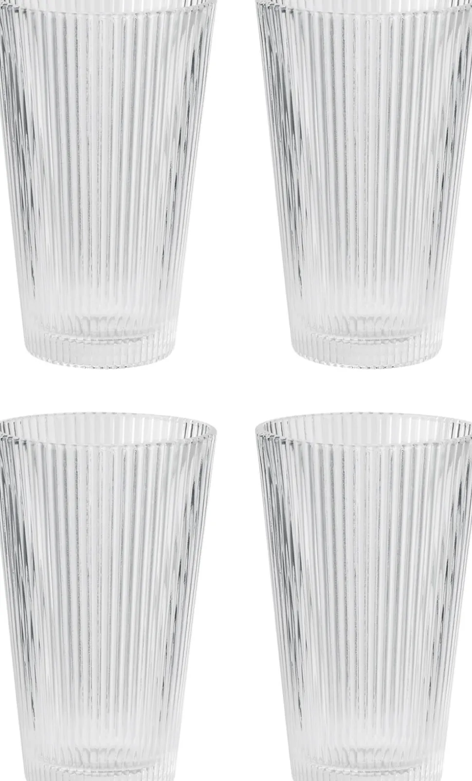Store drikkeglas til den populære Pilastro-serie – perfekt til både hverdag og fest. Det er designer, Francis Cayouette, der står bag Pilastro drikkeglassene. Som resten af Pilastro-serien er designet inspireret af 1920ernes Art Déco stil, og glassene er med deres koniske form og riller på én gang enkle og elegante. Drikkeglassene er ideelle til vand, juice eller drinks og tåler også varme drikke som kaffe og te. Alt i alt, et godt hverdagsglas, der har et elegant udtryk, men samtidigt er robust og nemt klarer hverdagens håndteringer og ture i opvaskemaskinen.