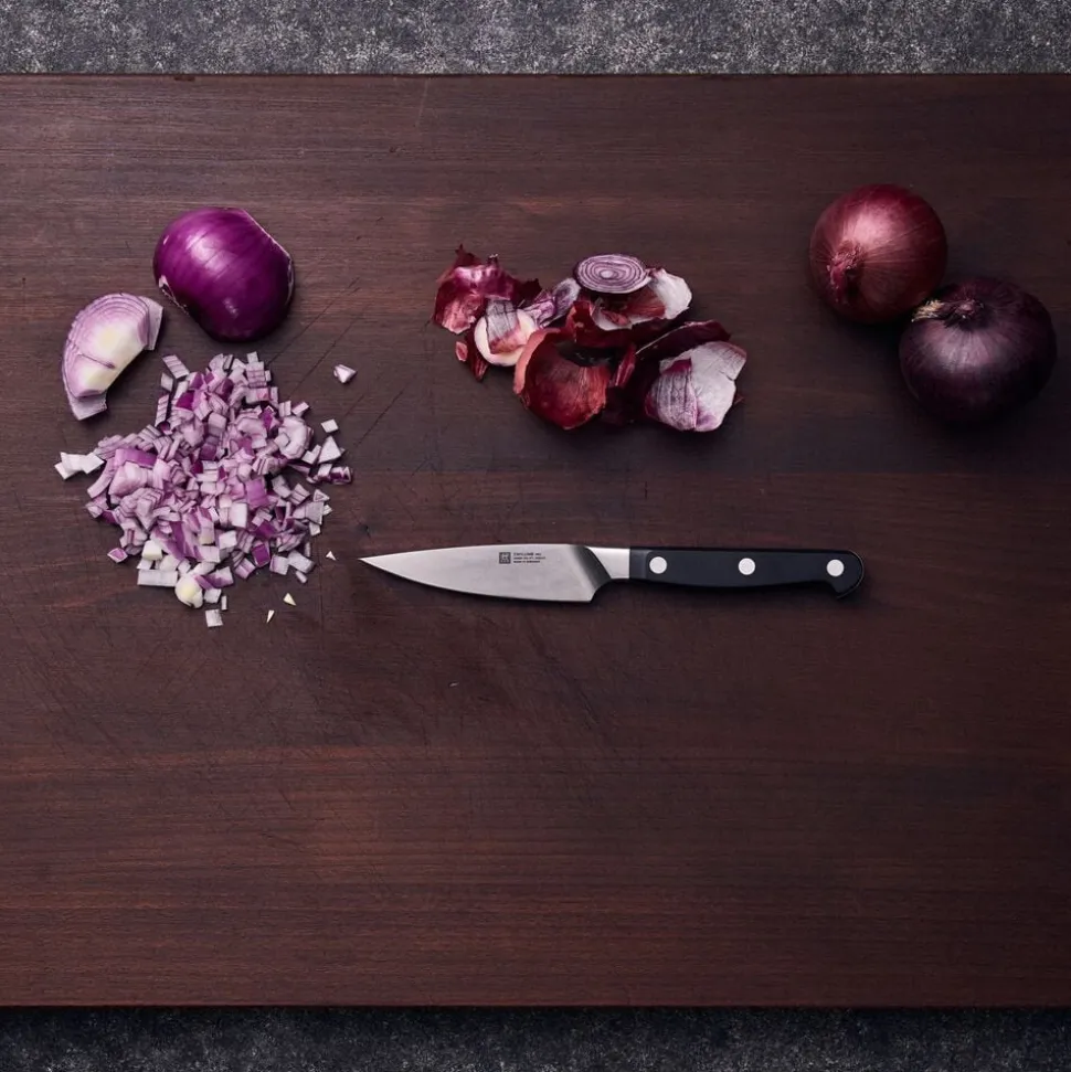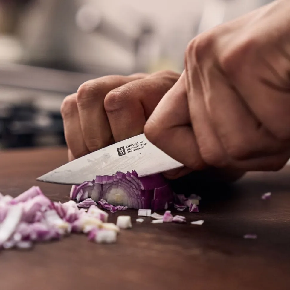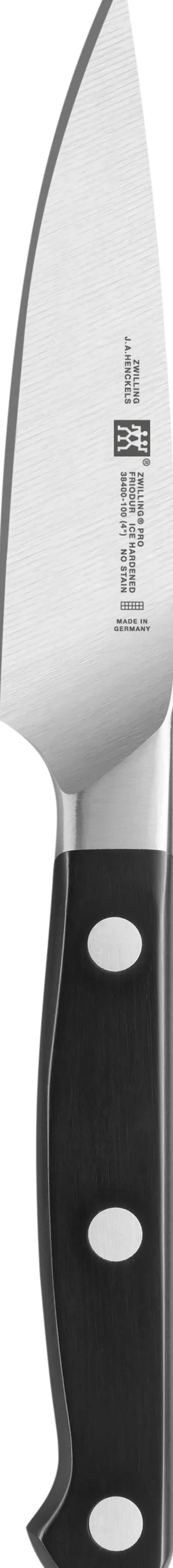 Udvikling af det klassiske. FORMFULDENDT Hvis man lægger vægt på høj kvalitet Made in Germany, så er ZWILLING PRO serien det helt rigtige valg. Hvad enten du er professionel eller hobbykok: Med ZWILLING PRO knive får man den perfekte symbiose af innovativ teknik, traditionelt design og største præcision. Fra urtekniv til santoku har serien alt, hvad man skal bruge til individuelle opgaver i køkkenet. Oplev en serie, som opfylder alle moderne krav til kokkeknive. Førsteklasses kvalitet og formfuldendt. KVALITET: ZWILLING specialstål imponerer med en optimal balance mellem krom- og kulstofindhold hemmeligheden ved stål af særlig høj kvalitet. FRIODUR-knive har gennemgået en speciel ishærdning, hvilket sikrer en enestående kvalitet. Knivene har fremragende skæreegenskaber, er yderst modstandsdygtige over for rust og er meget fleksible. FUNKTIONALITET: Den gennemførte æg sikrer en perfekt skæreevne helt hen til brystet. Desuden kombinerer den japanske og europæiske skæremetoder. PRÆCISION: SIGMAFORGE knive, præcisionssmedet i ét stykke, hvilket sikrer en perfekt geometri. Grundlæggende forudsætning for eksakt slibning og fremragende skæreegenskaber. HÅNDTERING: Bladgeometrien i kileform sørger for optimal stabilitet og et let snit, og den svungne brystform giver en sikker og præcis håndtering. SÆRLIG KVALITET: Klassikeren til det professionelle køkken. Designet med 3 nitter og gennemgående angel imponerer med sin optimale balance.