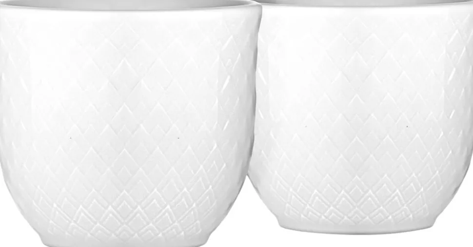 Rhombe æggebægere fra Lyngby Porcelæn er fremstillet i hvidt, blank-glaseret porcelæn, der giver et flot og moderne udtryk. Æggebægerne kommer i sæt af 2 stk. med en højde på 4,5 cm og en elegant udformning, der leder tankerne hen på Rhombe-seriens skønne skåle. Rhombe-serien er en nyfortolkning og modernisering af rhombe-mønstret, der for første gang så dagens lys i 1961. Mønstret er hentet fra Lyngby Porcelæns store designarkiv.