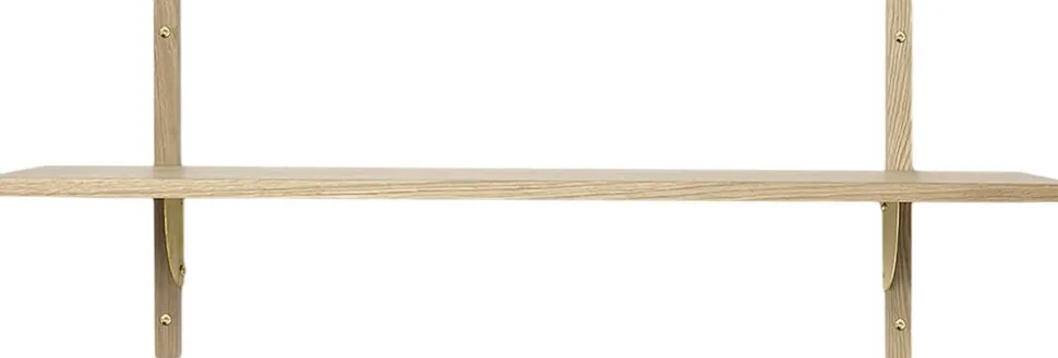 Sector en nyfortolkning af 50er og 60er reoler er karakteriseret ved sin robuste enkelhed og klassiske kombination af træ og messing den fås med naturlig egefinér eller med sortbejdsede askefinér hylder og med polerede eller sværtede messingbeslag. Den fås i to størrelser, og hylden fastgøres til væggen med de massive trælister med synlige skruer. Brug den til at udstille dine yndlingsting i stuen eller til opbevaring af krukker i et køkken.