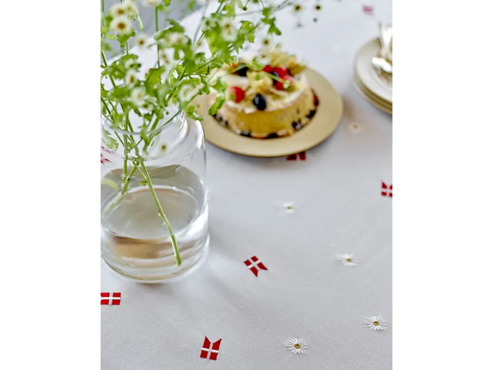 Skab en festlig stemning med vores broderede dug, Tillykke! Dugen prydes smukt af Dannebrog og delikate margueritter, også kendt som Daisies. Dette design er skabt til at bringe glæde og fejring til enhver lejlighed. Tillykke-designet er ideelt til at skabe en hyggelig atmosfære ved festlige lejligheder, uanset om det er til fødselsdage, jubilæer eller andre glædelige begivenhederVi tilbyder Tillykke-designet både som dug og dækkeserviet, så du kan skabe den perfekte festlige borddækning. Lad Dannebrog og margueritter danne baggrunden til dine særlige øjeblikke. Fejr med stil – Tillykke er broderet luksus til dit festbord!