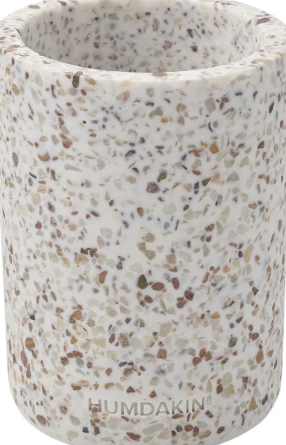TERRAZZO VASE 14 x 10 cm Beautiful vase made from terrazzo. Use it for storage or buy yourself beautiful flowers to show of in the vase. Mix with the other styles from our Terrazzo collection. Care- wipe with warm water. Refrain from using detergents containing acids, vinegar and degreasing detergents.