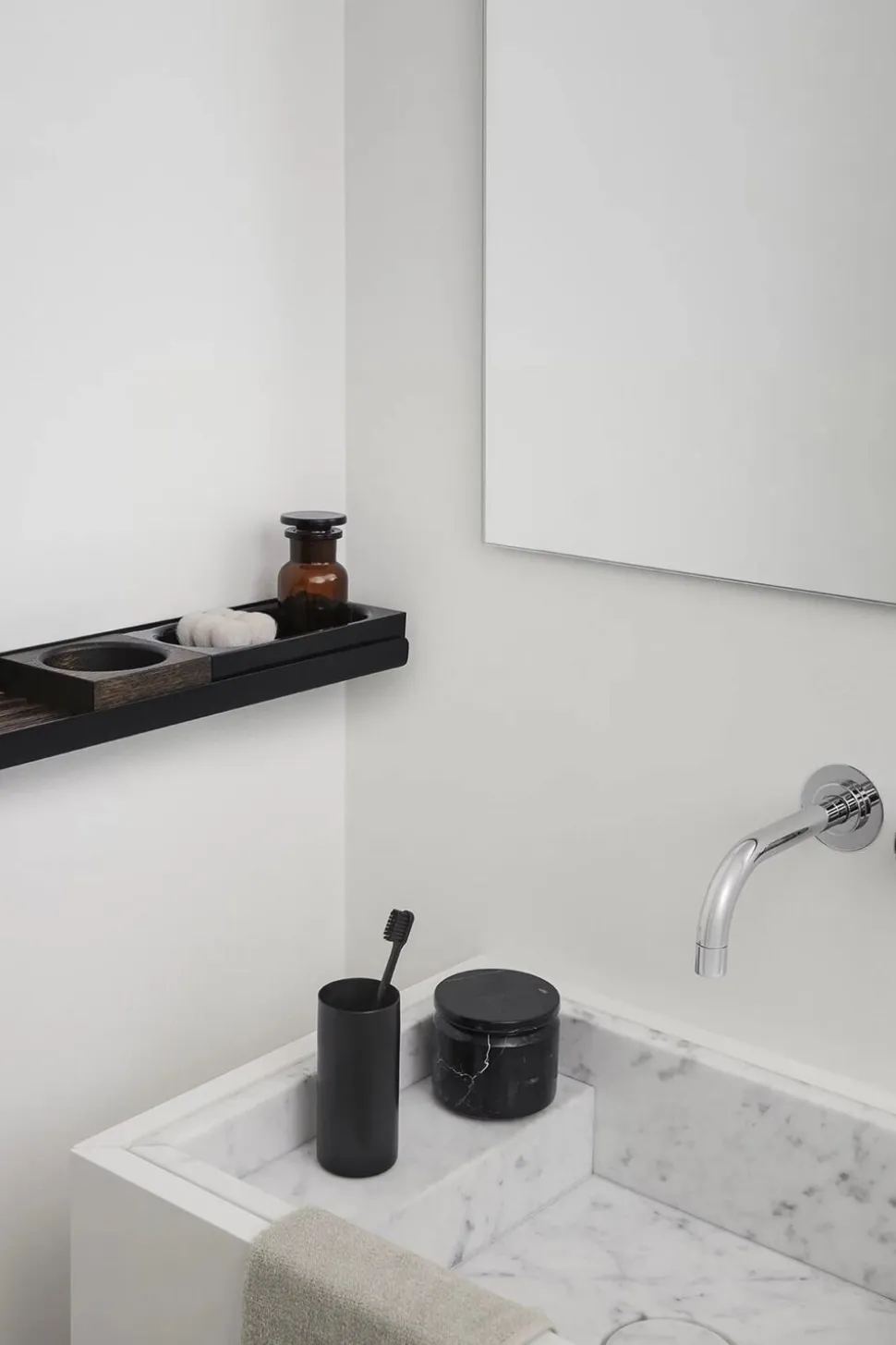 Farven på renhed og uskyld – og optimisme, ærlighed og nye begyndelser. Hvid: Den mest klassiske farve af alle giver dig mulighed for at forvandle dit badeværelse til en atmosfære af ro, afslapning og selvpleje – det være sig et lille gæstetoilet eller et rummeligt badeværelse. MODO toiletbørsten i titaniumbelagt rustfrit stål er det perfekte supplement til et enkelt elegant badeværelse. Whitee titaniumbelægningen giver ikke kun en behagelig fornemmelse, men er også slidstærk, korrosionsbestandig, ridsefast og derfor ekstremt holdbar. Klare konturer, klassisk cylinder og harmonisk afrundet Krop – er Design funktionernei MODO badeværelsestilbehør. Den gummibelagte underside af toiletbørsten sikrer en fast stand. Børsten forsvinder ind i cylinderen, og et lukkelåg på håndtaget forhindrer, at rengøringsværktøjet ses. Dette er funktionelt gennemtænkt Design i badeværelset. Børsten kan udskiftes, artikel nr. 88092.