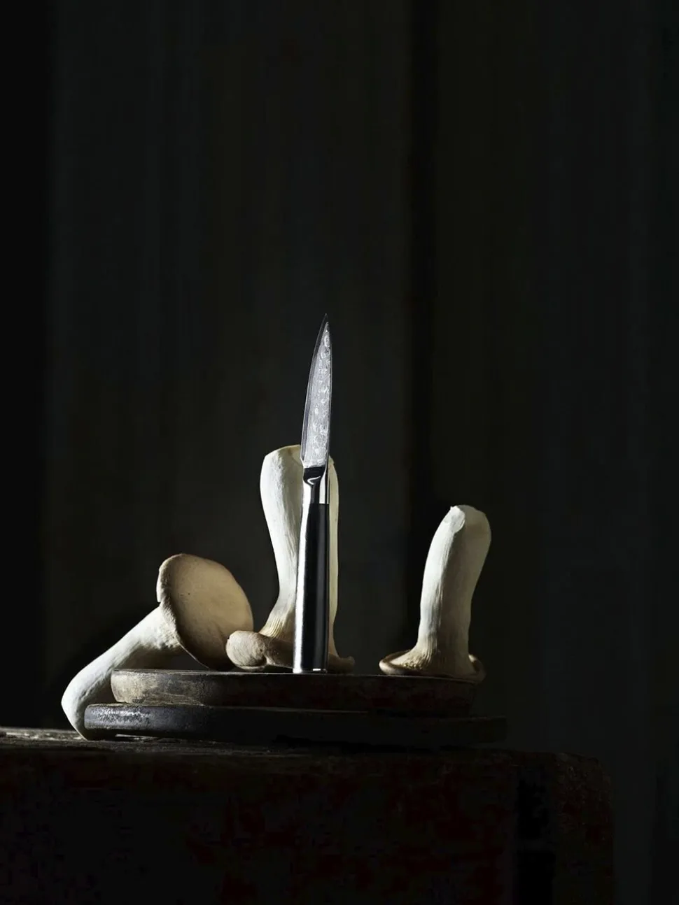 Kniven er lavet i 67 lag stål med en kerne af VG-10 stål og et håndtag i sort G10-komposit.