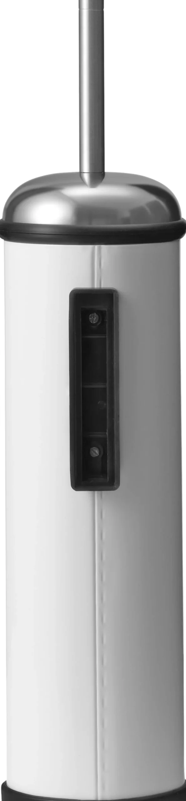 Vipp toiletbørsten med ophæng er fremstillet i rustfrit stål. Den kan nemt af- og påmonteres vægbeslaget, der er udstyret med en låsemekanisme. Børstehovedet og inderrøret kan udskiftes. En gummiring i toppen sikrer at børsten lukker tæt, mens ekstra tyngde i bunden sikrer god stabilitet.