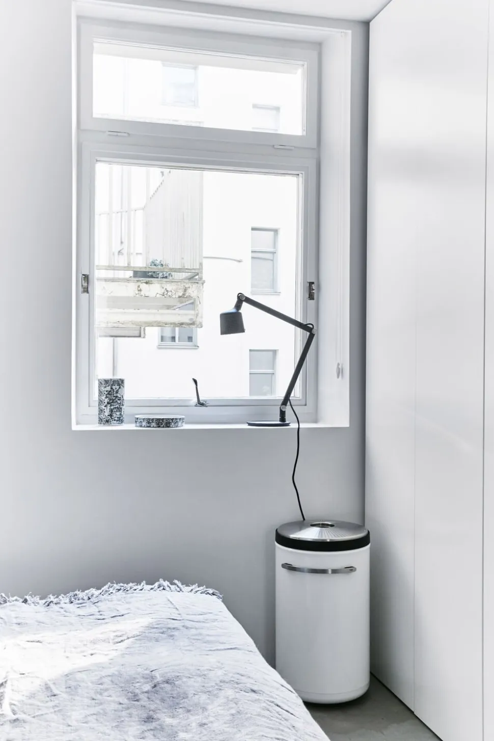 Vipp441 vasketøjskurven er fremstillet af hvid pulverlakeret stål og gummi og har bløde afrundede former, der designmæssigt kobler den til den øvrige Vipp kollektion. Låget af børstet 0,8 mm rustfrit stål er perforeret med huller, der sikrer luftcirkulation til vasketøjet. Inderposen har to rum, så vasketøjet kan sorteres, den kan nemt tages op af kurven og tåler maskinvask. Vasketøjskurven er endvidere monteret med gummihjul.