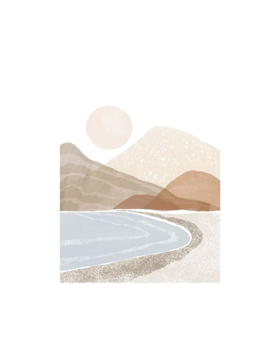 Elegant plakat med bløde, jordfarvede bjerge, roligt hav og varm sol. Skaber en beroligende, nordisk stemning i stuen, soveværelset eller kontoret. Print i høj kvalitet med naturlige toner og enkelt design. Fås i flere størrelser. Bestil nu og tilføj ro og balance til dit hjem!