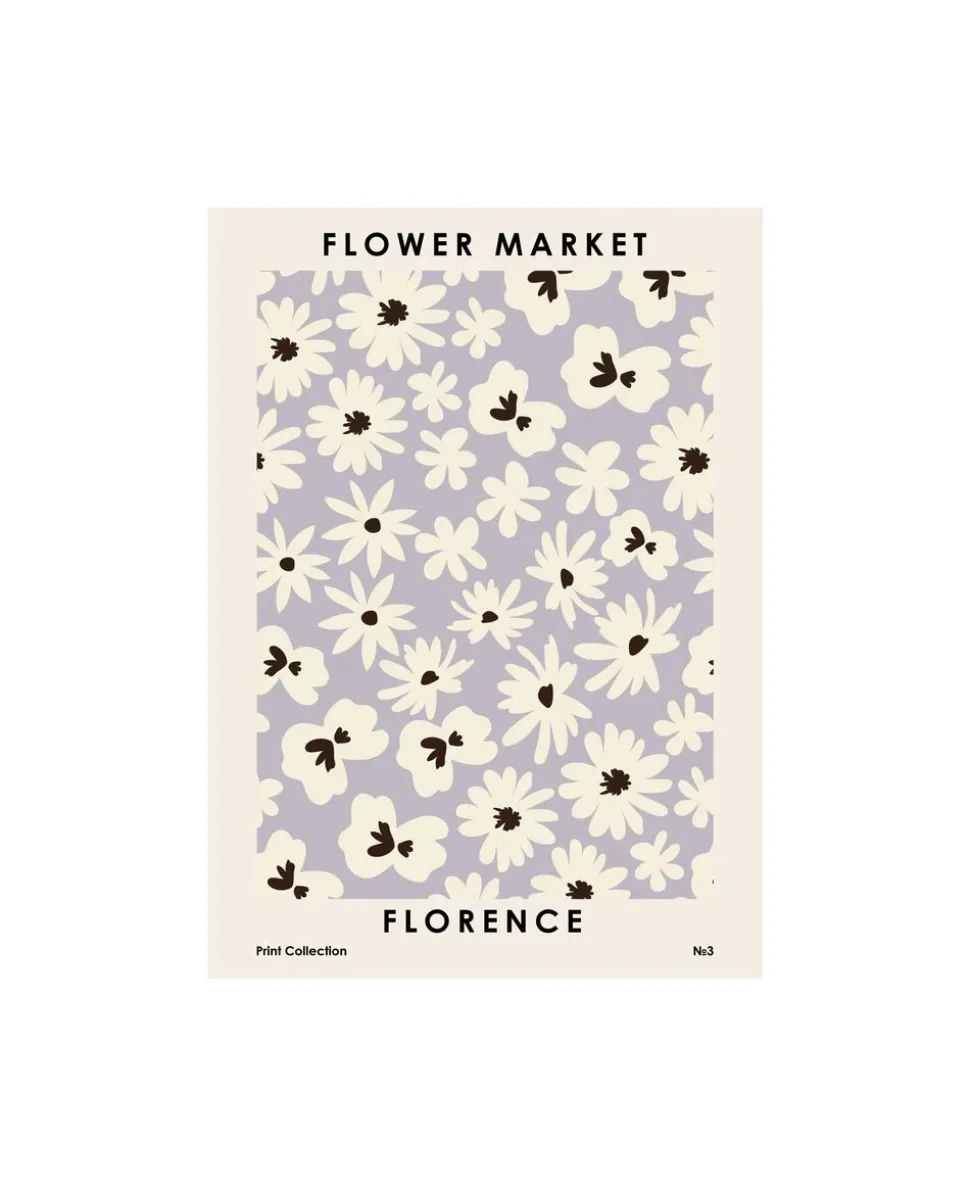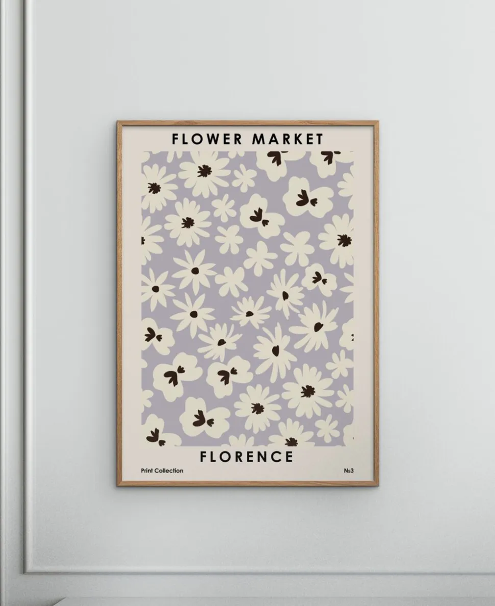 Elegant plakat med floralt mønster i cremehvid og sort på en støvet lilla baggrund. Inspireret af italiensk blomsteræstetik og vintage plakatdesign. Perfekt til at skabe et feminint, hyggeligt udtryk i stuen, soveværelset eller køkkenet.