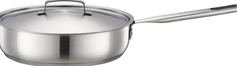 Fiskars All Steel sauterpande 26 cm giver madlavningen et løft med genanvendt rustfrit stål i høj kvalitet, som minimerer affaldsmængden. Panden er fremstillet af 90 % genanvendt stål med 92 % lavere CO2 udledning end gennemsnittet i branchen og er utrolig holdbar. Takket være dens non-stick Ceratec belægning, der giver en fin stegeskorpe og kan bruges ved høje temperaturer, er du sikker på at opnå perfekte stegeresultater. Den tykke 3-lags bund er optimeret til effektiv og jævn varmefordeling på alle typer kogezoner, mens låget i rustfrit stål gør det nemt at tilberede sauter- og simreretter. Pandens tidløse, simple udtryk passer godt ind i det moderne, bæredygtige køkken og gør hvert måltid til en god oplevelse. Fremstillet i Finland med bæredygtige processer og produktionsmetoder.