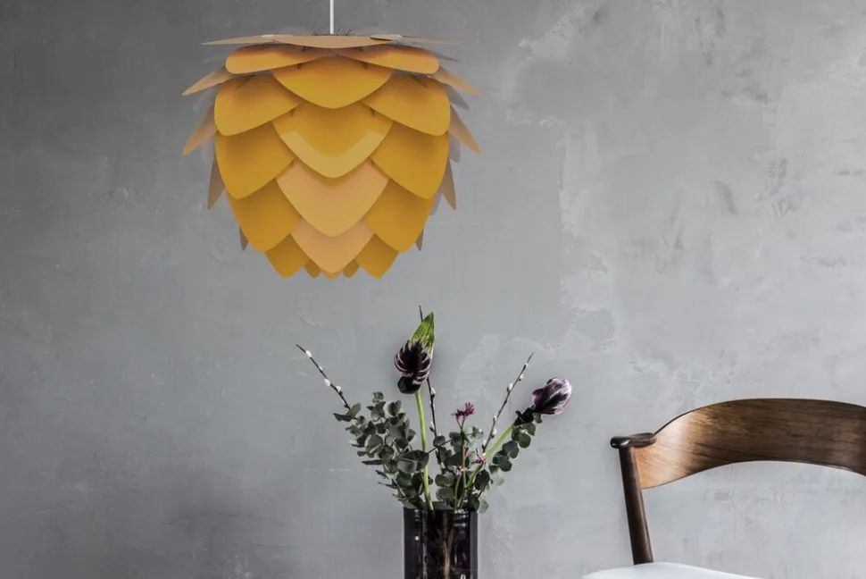 Inspireret af naturen med sine karakteristiske trekantede kronblade, kaster Aluvia i børstet messing et varmt og blændende omgivende lys, der ser lige så godt ud, som det tænder.