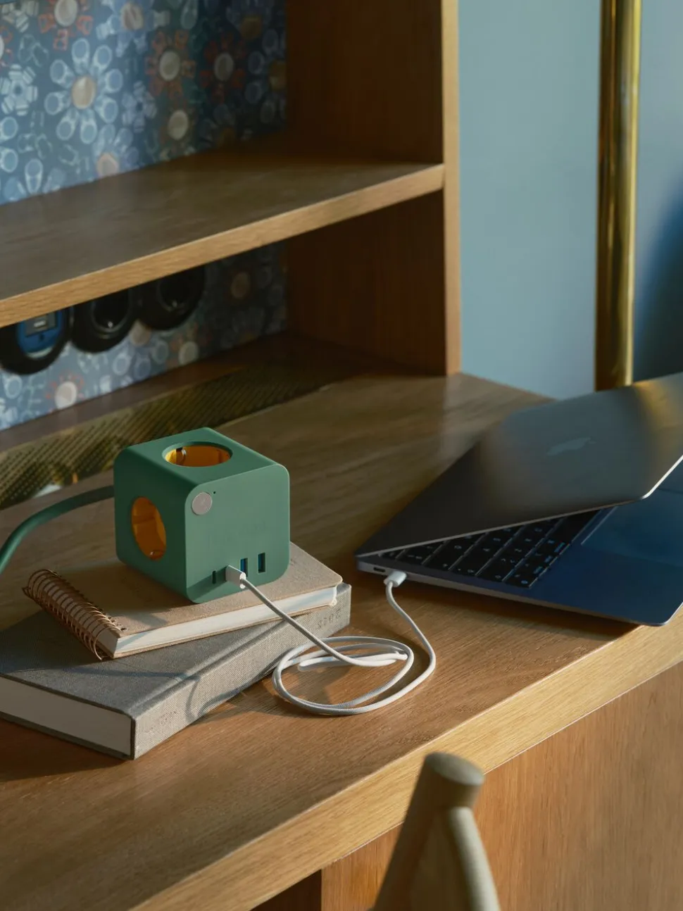 Ampie wired er et elegant og alsidigt multistik med ledning, der samler al din opladning ét sted. Den lange ledning giver fleksibilitet i placeringen – f.eks. under bordet, så du undgår at have den liggende på gulvet – uanset om du skal tilkoble lampe, højttaler, mobil, computer eller noget helt andet.