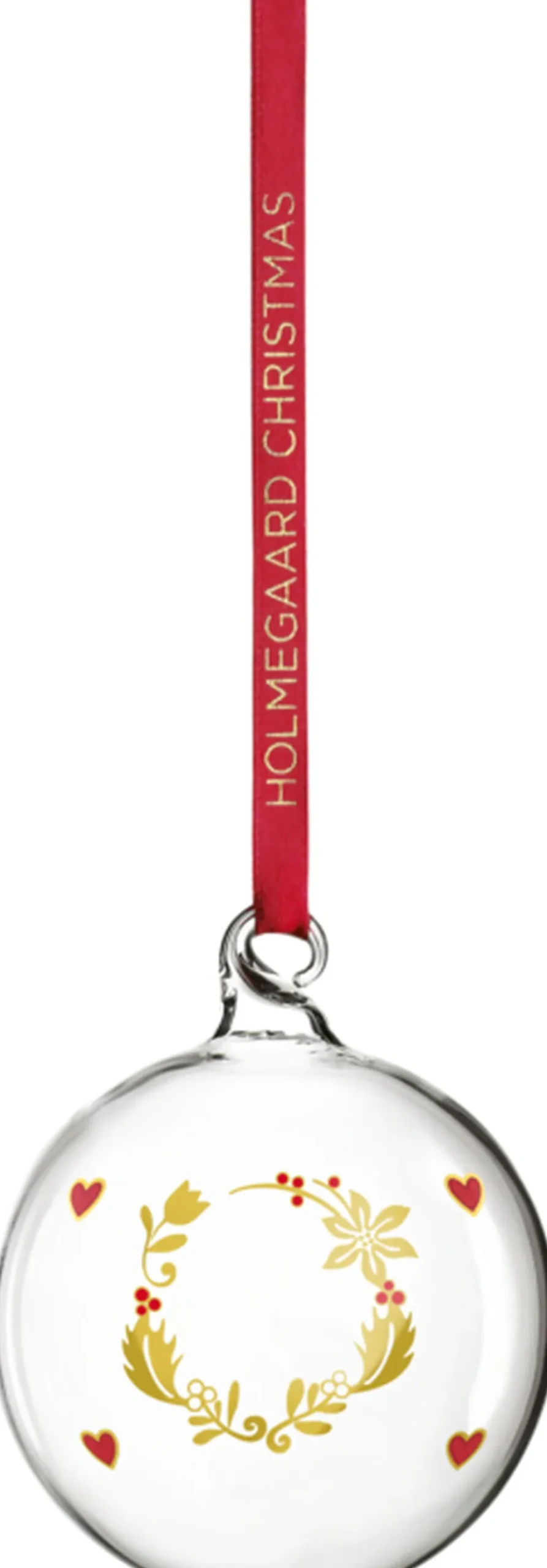 Holmegaards årlige juleklokke, hjerte og stjerne lavet i mundblæst glas er i nogle hjem blevet et regulært samlerobjekt. Bag det elegante ophæng står den danske designer Ann-Sofi Romme, der i 1993 skabte den første Holmegaard-juleklokke med motiv. Og siden da er det blevet til en hel kollektion bestående af klokker, hjerter, stjerner og kugler i mundblæst glas, der hvert år får et nyt, smukt julemotiv. 2023-kollektionen fejrer 30 års-jubilæet med et særligt motiv, der på fineste vis binder årene sammen. Ann-Sofi Romme Årets julekugle 2023 på 6,5 cm i diameter er i mundblæst glas og prydet med julemotivet 2023 en julekrans bestående af blomsten fra en julestjerne, en kristtorn, en mistelten og en juletulipan. Farverne er holdt klassiske i rød og guld og med en afsluttende metallisk finish, og de små, røde hjerter skaber en hyggelig stemning til hjerternes fest. Den grafiske dekoration er helt i tråd med både juletraditioner og tidens farvetrend med matchende røde silkesnore, der indbyder til ophæng på træet, i vinduet og måske midt i døren som en finurlig invitation til misteltenmagi.