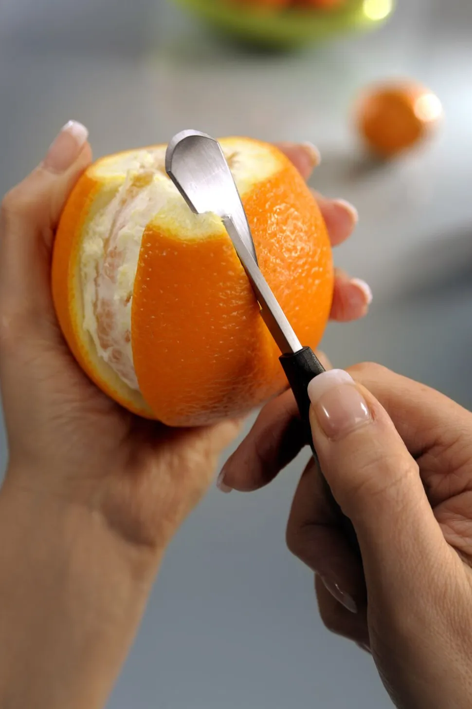 Med citrusskrælleren fra Gefu kan du hurtigt og nemt få skallen af dine appelsiner, citroner og lime mm.