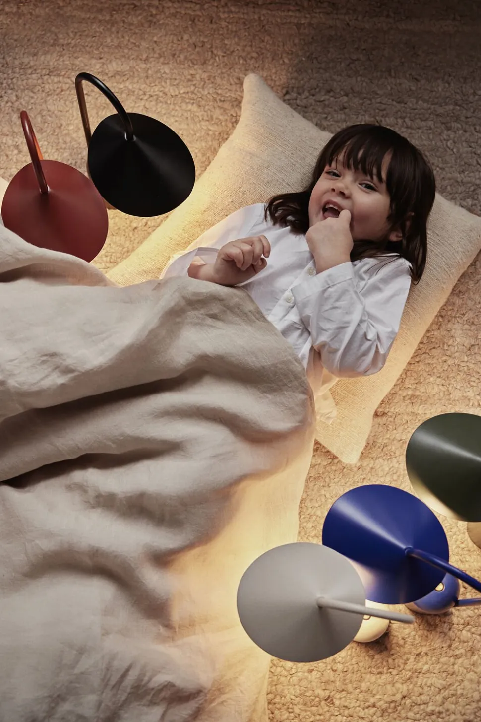 Den bærbare Arum-lampe er en alsidig og mobil belysningsløsning. Denne lille, bærbare LED-lampe er genopladelig via USB-C, så du kan skabe en hyggelig stemning, uanset hvor du befinder dig. Lampens form svarer til Arum-bordlampens, men denne bærbare version er fremstillet udelukkende af pulverlakeret jern og aluminium, hvilket giver holdbarhed og en elegant finish. Designet bevarer kollektionens karakteristiske elegance og balance med den kronbladsformede skærm, der ser ud til at svæve fra den stilklignende stang. Lampen har en tretrins berøringsdæmper, der giver en justerbar omgivelsesbelysning for at opfylde dine behov for lysstyrke.