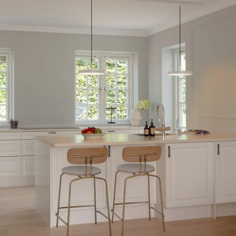 Asteria Plus tager det klassiske Asteria-vedhæng til nye højder ved at tilbyde justerbar lystemperatur, der gør det muligt at tilpasse lyset til den specifikke indstilling. Asteria Plus pendlen er kompatibel med skinnebelysning og kan dæmpes via en ekstern lysdæmper, hvilket gør den perfekt til kontoret, private spisestuemiljøer eller køkkenområder. Den kombinerer funktionalitet og alsidighed og imødekommer behovene i områder, hvor tilpasningsevne og stil er af største vigtighed. Asteria Plus pendlens slanke udseende og rene linjer repræsenterer minimalistisk skønhed, mens et indbygget LED-panel tilfører rummet blød og tidløs belysning. Med en skjult knap i lampens top kan du nemt justere lystemperaturen og skabe den perfekte atmosfære, uanset om det er til fokuseret arbejde eller en afslappet atmosfære. Lampen kan dæmpes ved brug af en ekstern lysdæmper. Asteria Plus fås i en række forskellige farver i medium og mini og har en messingplade, der nemt kan udskiftes med stål eller sort, hvilket giver uendelige Designmuligheder, der passer til din personlige stil