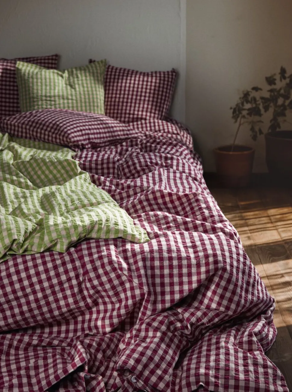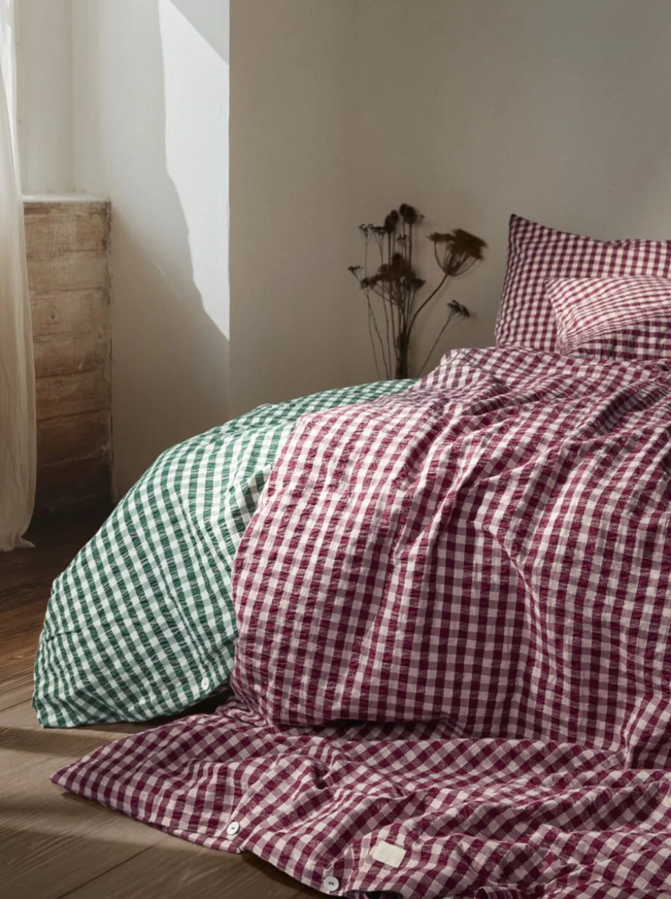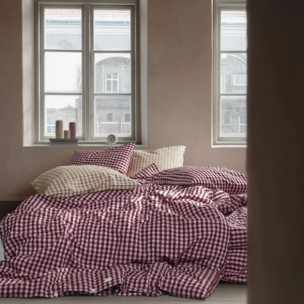 Sanseligt, behageligt, 100% økologisk og GOTS-certificeret. Sengetøjet Bæk&Bølge fra JUNA er produceret ud fra ansvarlige principper og har en helt speciel vævning med en tekstur, der vækker minder. Måske kan du huske følelsen af stoffet fra barndommen, bedsteforældrene eller sommerhusferierne? Ikke alene er der noget nostalgisk over materialet det er også funktionelt og lader luften cirkulere mellem din hud og stoffet. Det kalder på en god nats søvn, så du kan restituere og lade op til en ny dag. Bæk&Bølge har det helt rigtige casual og naturlige udtryk, der præger tidens mode og indretningstrends. Mærk stemningen. Uperfekt på den helt perfekte måde. Sengetøjet til dobbeltdyne med ekstra længde måler 200×220 cm og kommer i blomme/rosa, hvor dybde møder lethed i en smuk balance. Den mørke, forførende blommefarve tilfører et strejf af subtil luksus og sofistikeret varme, mens den støvede rosa nuance har en blød og beroligende karakter, der giver en følelse af harmoni og velvære. Inspireret af tidens længsel efter både eskapisme og jordforbindelse skaber denne farvekombination en stemning af ro og sanselig velvære perfekt til at omfavne hverdagens små pusterum. Selvom farverne selvfølgelig har en sæsonpræget appel, er de samtidig så tidløse og raffinerede, at JUNA-sengetøjet nemt kan bruges året rundt. Og år efter år. Har du flere forskellige Bæk&Bølge-sengesæt fra JUNA, kan du lege med at blande de forskellige farver og mønstre på kryds og tværs og skabe dit eget drømmende univers i soveværelset, i sofaen, i hængekøjen, på altanen, eller hvor du nu tager din dyne og pude med hen. Du kan gøre lige, hvad du drømmer om. (GOTS Organic Certified by Control Union, CU1026087)