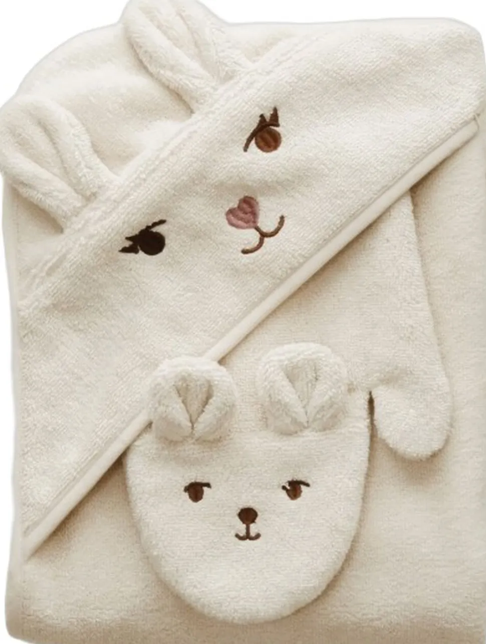 Fabelabs Bear and Bunny Badevante er den blødeste ven, når din lille har brug for et bad, og vanten er også perfekt til leg. Badevanten er lavet af økologisk bomuldsmateriale for at give din lille en behagelig badeoplevelse. Dette sæt inkluderer to badevanter – en med Bjørn og en med Kanin i to forskellige farvesæt.