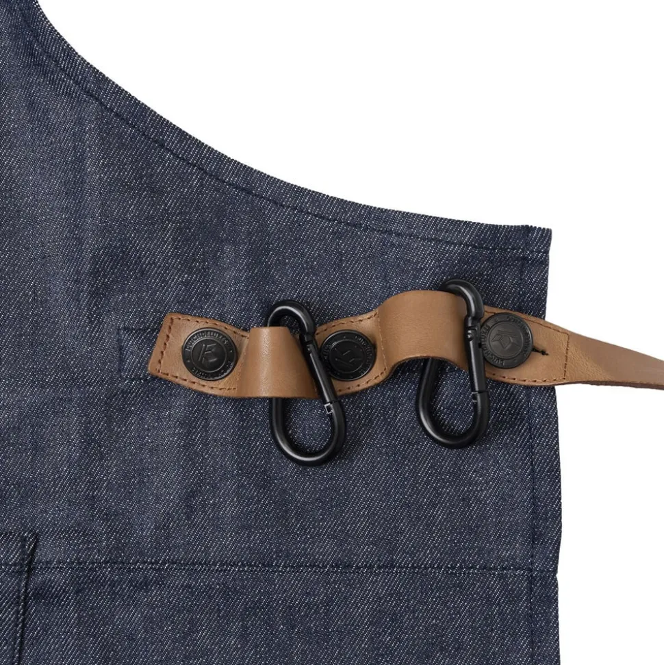 Dette karakteristiske BBQ-stilforklæde er det trendy forklæde for alle med en passion for grilling, god mad og Fashion BBQ-forklædet leveres med 2 karabinkroge og har en løkke i taljestroppen til dit håndklæde og andet køkkenudstyr. Luk forklædet bagpå med en bæltespændelukning. Maskinvask ved 40 °C. (Fjern først læderstropperne.) Én størrelse passer til alle.