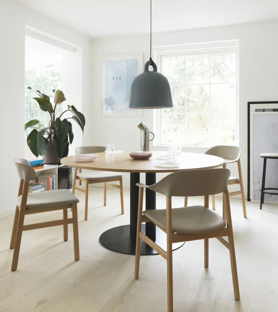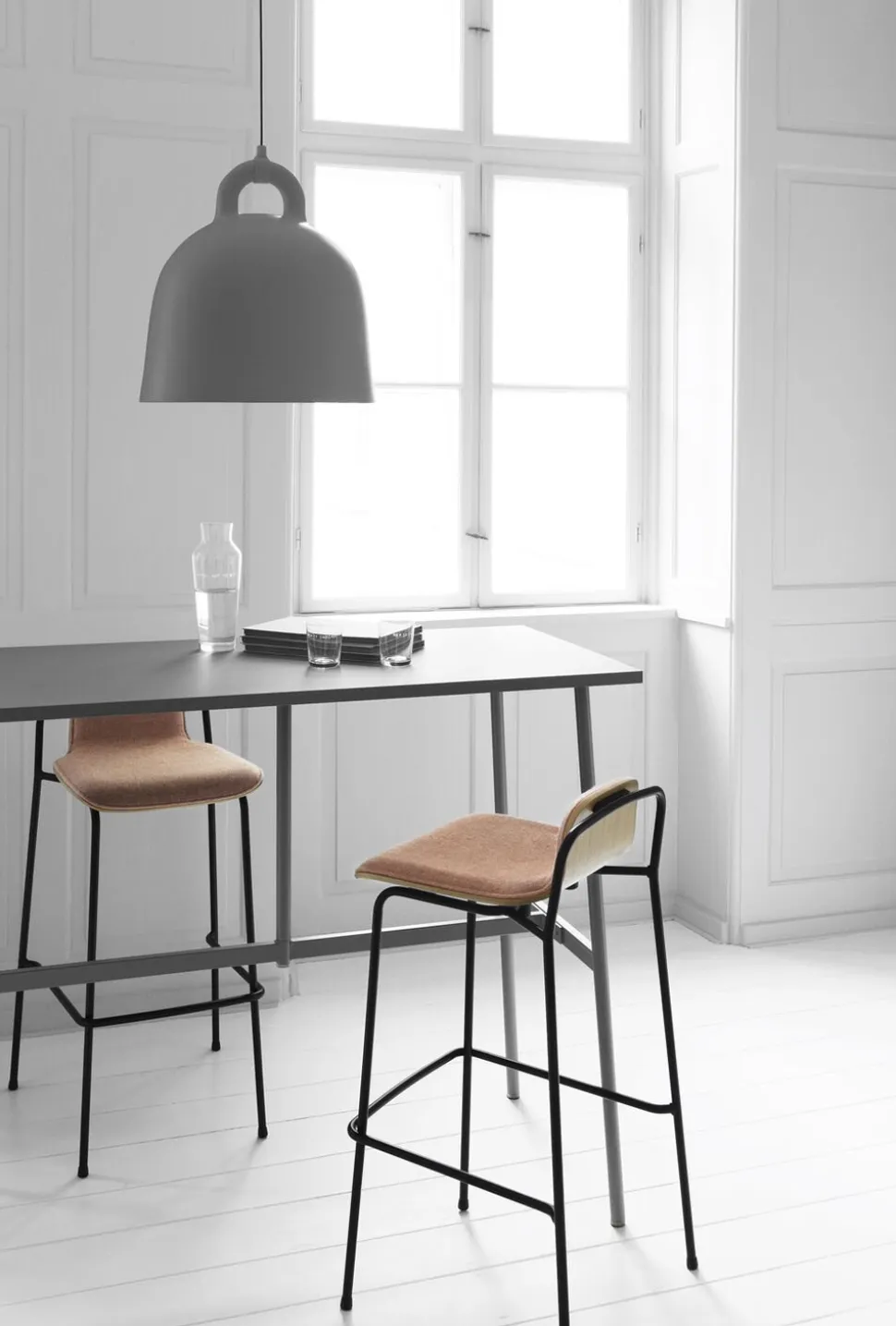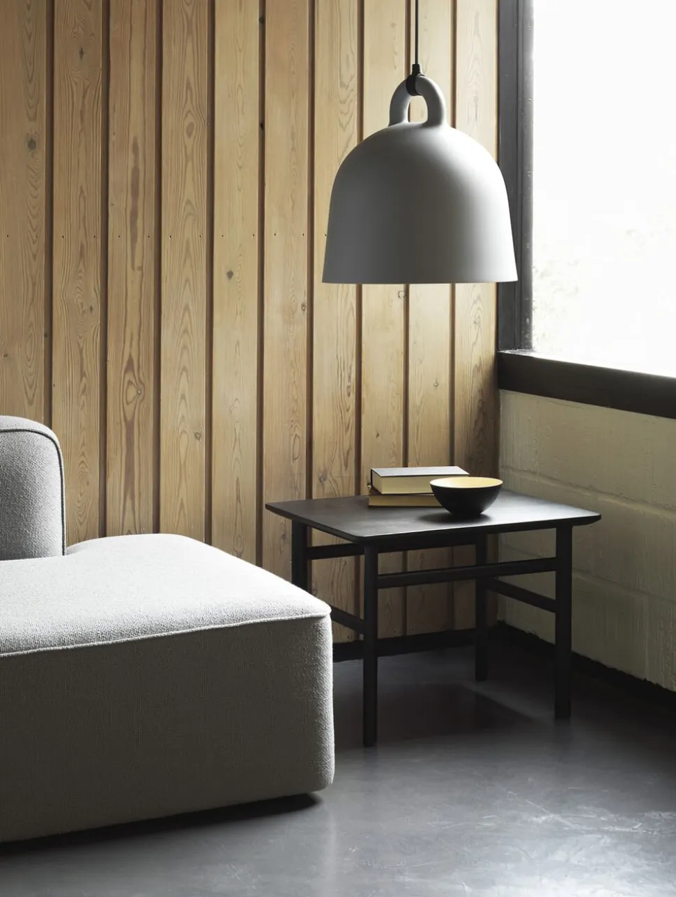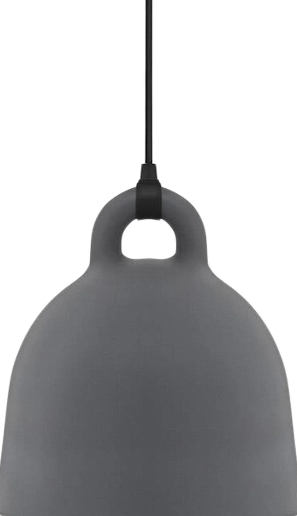 Designerne Andreas Lund og Jacob Rudbeck har med Bell haft fokus på at designe en lampe, hvor ophængets design skulle have plads til at folde sig ud. Den bløde, runde silhuet og matte overflade giver indtrykket af, at lampen er støbt. Kontrasten mellem materialerne skaber en moderne lampe. Den lyse inderside reflekterer lyset, der falder som en kegle og giver en god lyskilde eksempelvis over spisebordet.