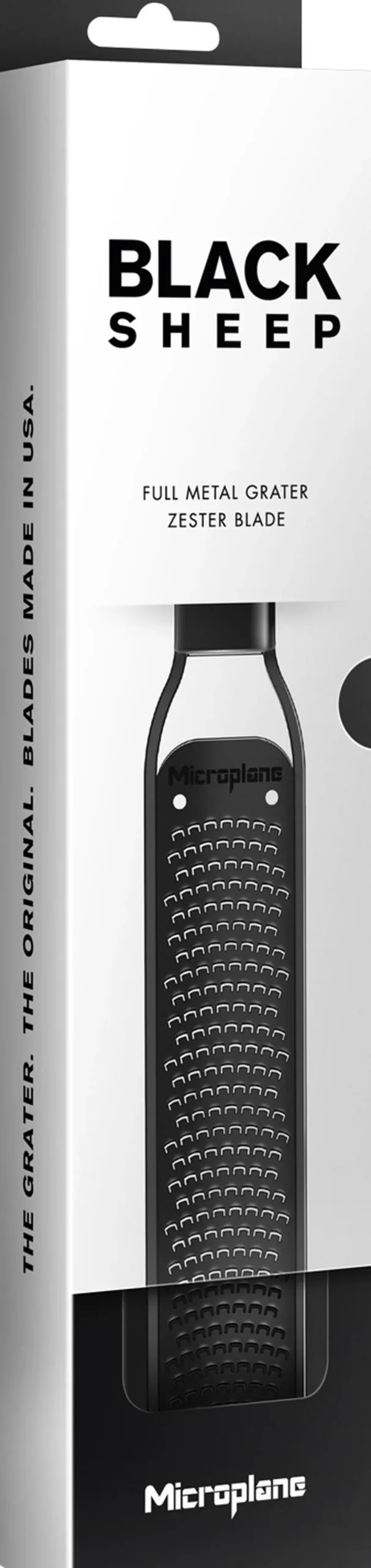 Med dit nye rivejern fra Microplane Black Sheep-serien kan du rive citrusfrugter, chokolade, ingefær, hård ost, trøfler og meget mere.