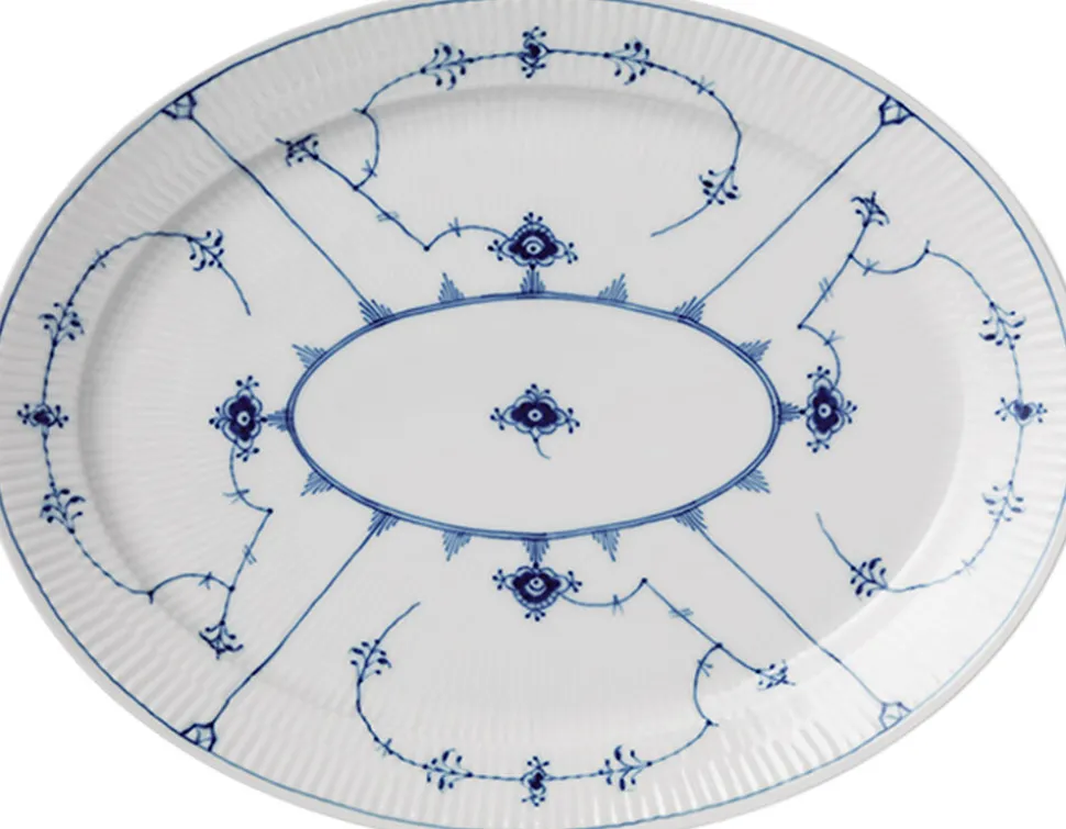 Musselmalet Riflet fascinerer med sin klassiske alsidighed. Den yndefulde dekoration fremhæver de delikate former og det fine håndværk, der ligger bag hver steldel. Musselmalet Riflet er et tidløst stel