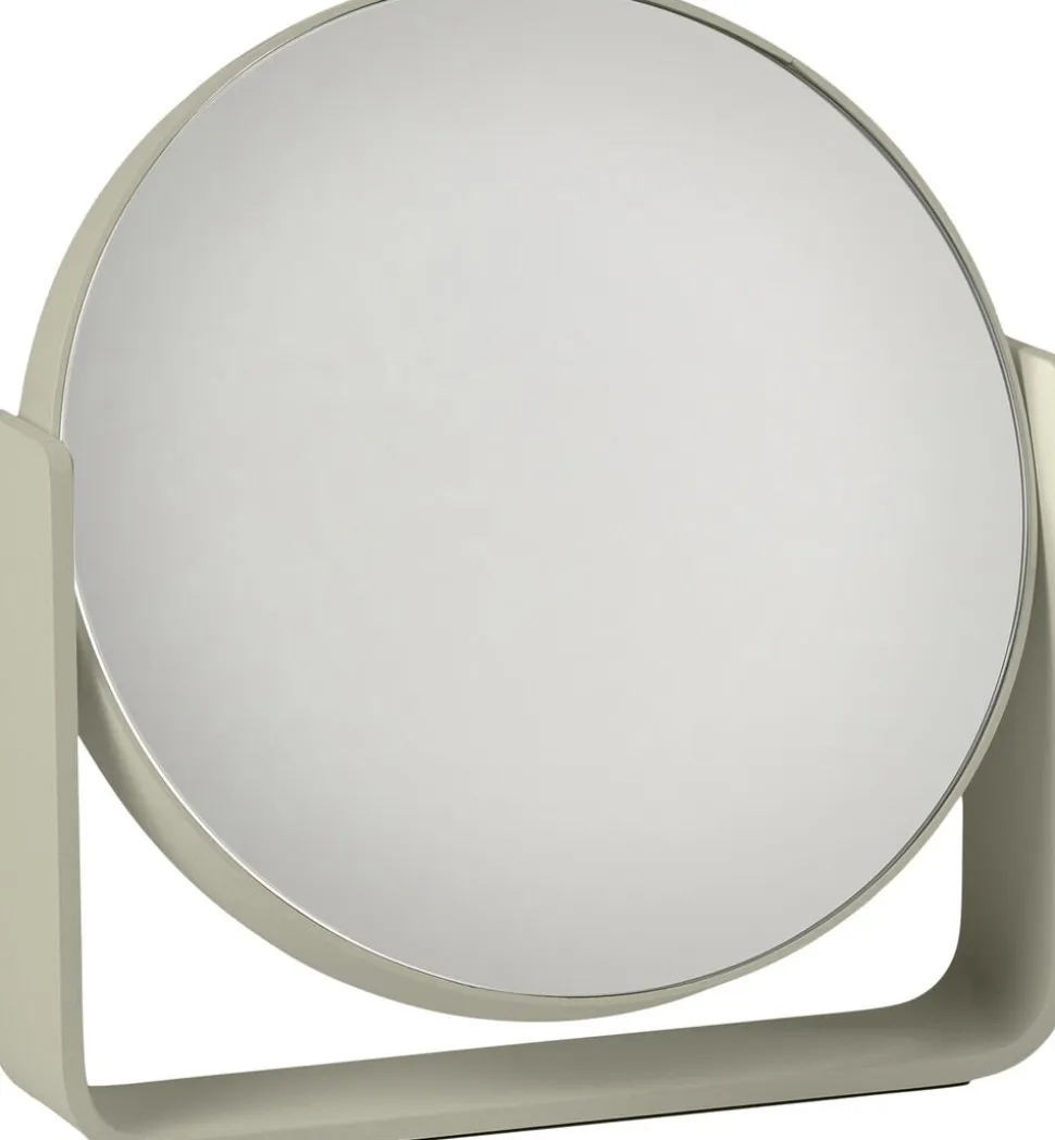 Uundværligt bordspejl, der pynter, hvor end du placerer det. Den ene side er almindeligt spejl, mens den anden forstørrer hele fem gange. Spejlet roterer sikkert om egen akse, da det bæres af en bred aluminiumsramme, som samtidig udgør spejlets stabile base. Det er pulverlakeret og har et fint mat look. Spejlet glider smukt ind i den populære UME-serie og fås i alle 7 farver: Black, White, Soft Grey, Grey, Eucalyptus, Taupe, Olive Green.